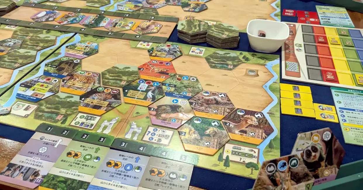 プレイヤーは自分の動物園ボードに、動物・建物・計画が描かれたタイルを配置し、保全活動を進めながら高得点を目指します。