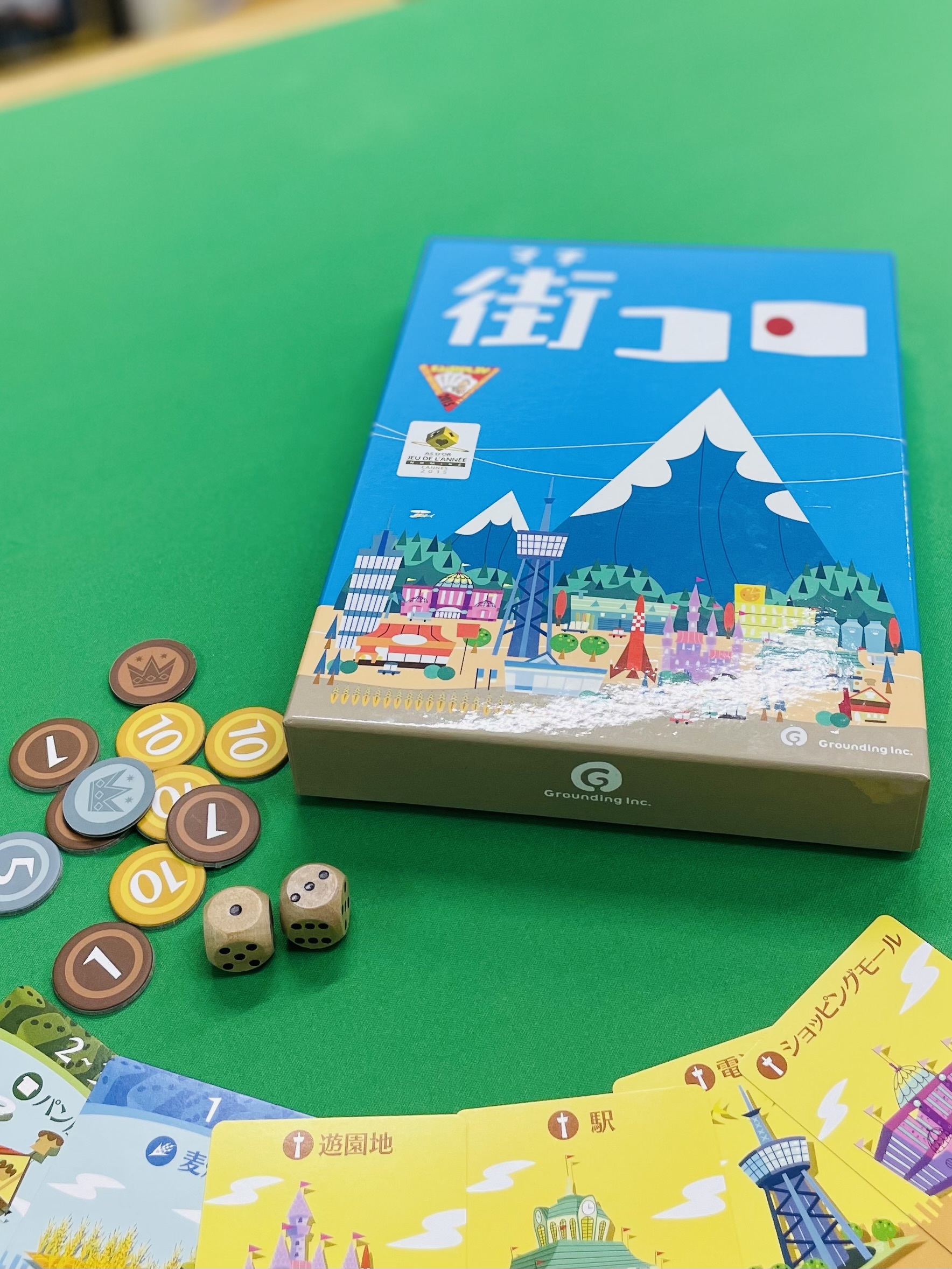 『街コロ』は、サイコロを振ってお金を集め、建物を建てて街を発展させていく、ほのぼの系“まちづくり”ボードゲームです。