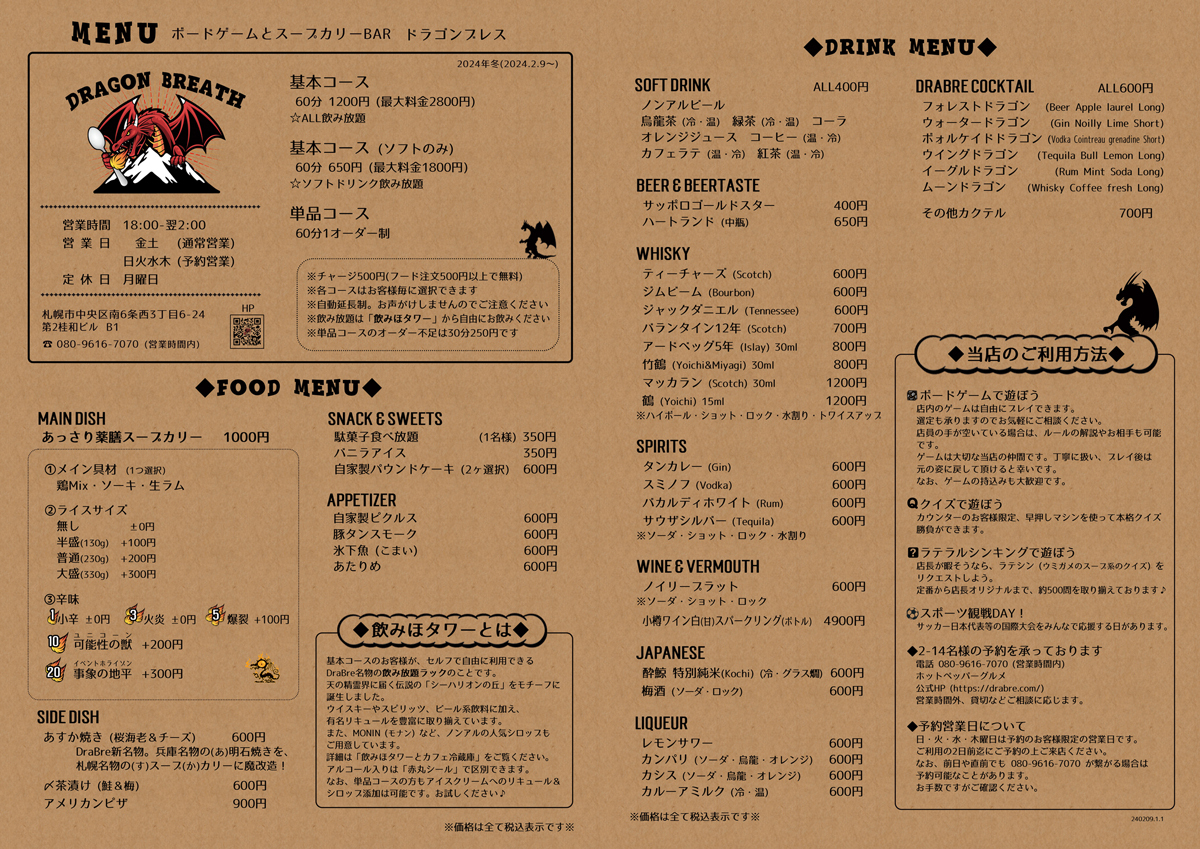 - 約1年前2024年11月03日 20時17分頃ドラブレ、移転リニューアルのお知らせです!昨年ススキノに誕生した小さな隠れ家BAR「ドラゴンブレス」。ボードゲーマー、TRPGプレイヤーの皆様に愛されてきた当店ですが、2024年11月、豊平区平岸に移転リニューアルオープンします!プレイスペースは約3倍に拡大、名物「飲み放題タワー」も超進化!勿論ゲームも遊び放題です。詳しい開店日や営業...57ページビュー