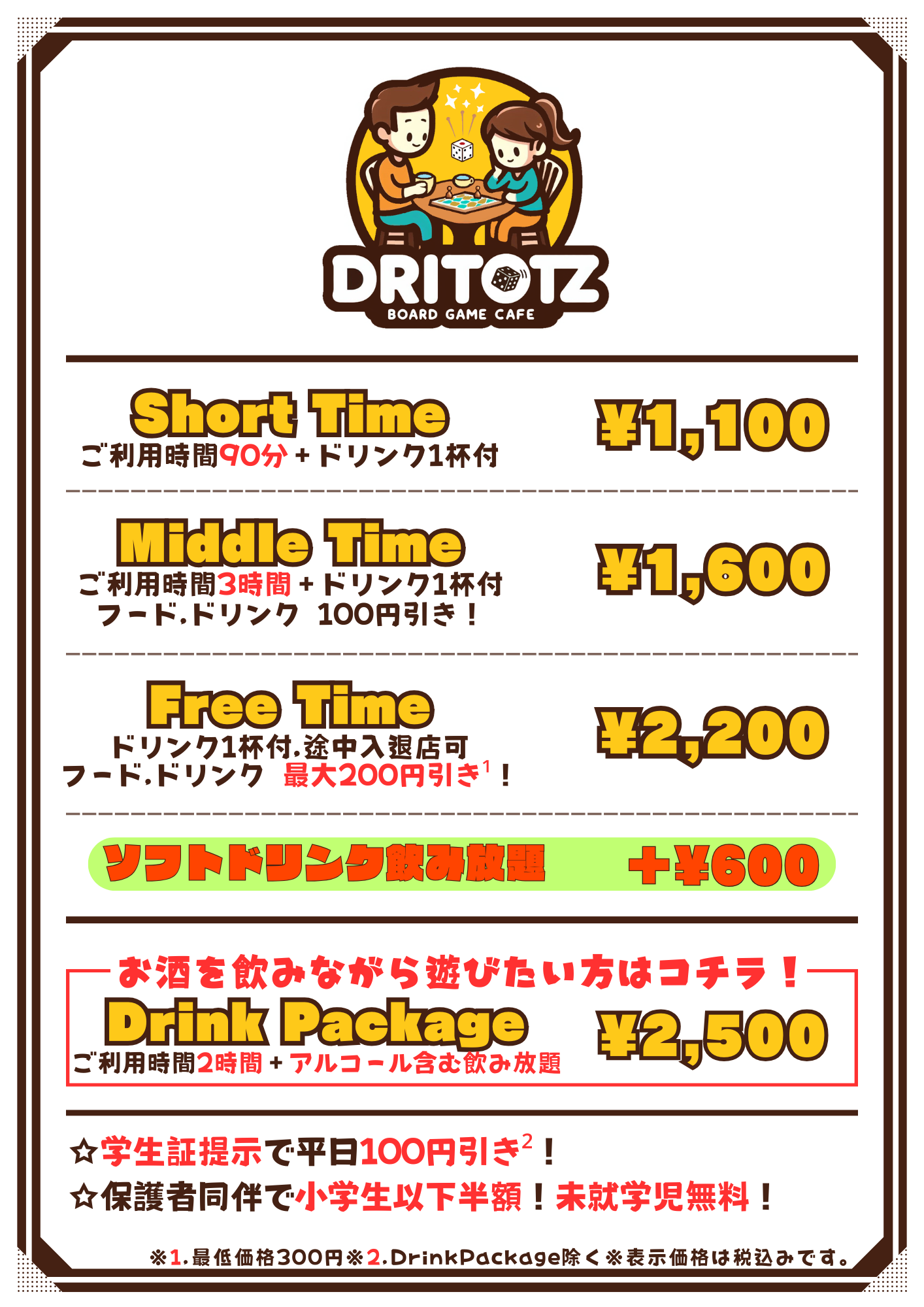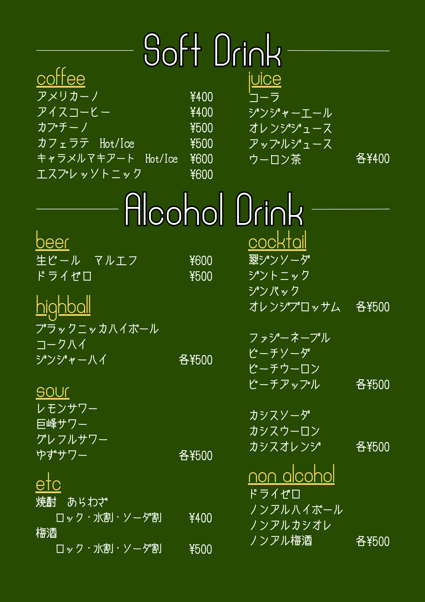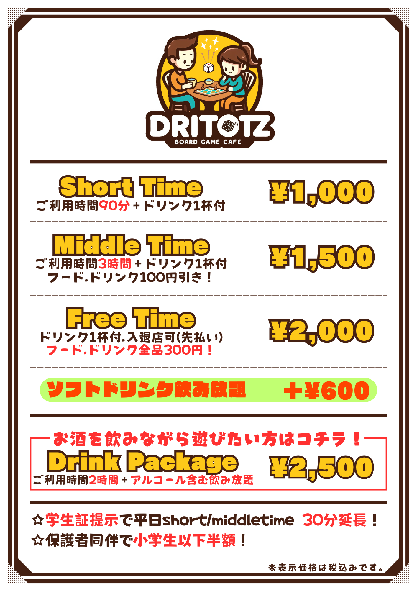 料金/メニュー表