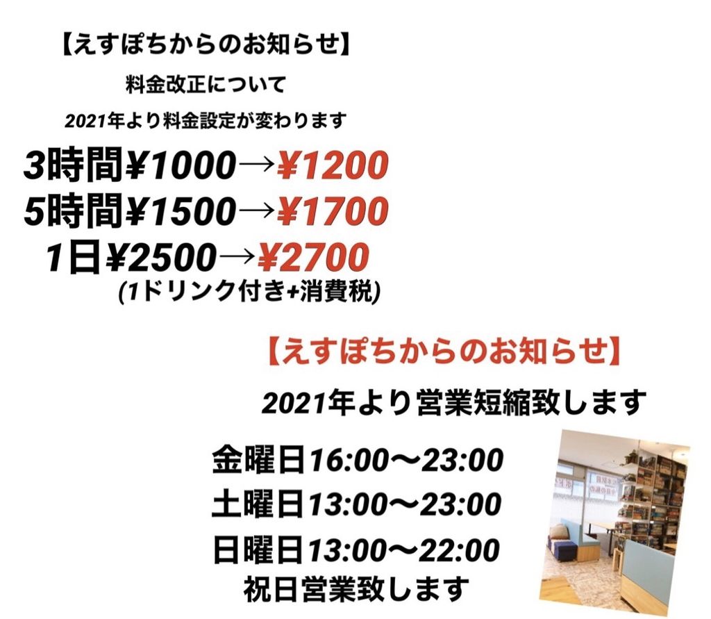 えすぽちの営業形態が2021年から変わりましたのでご報告となります。