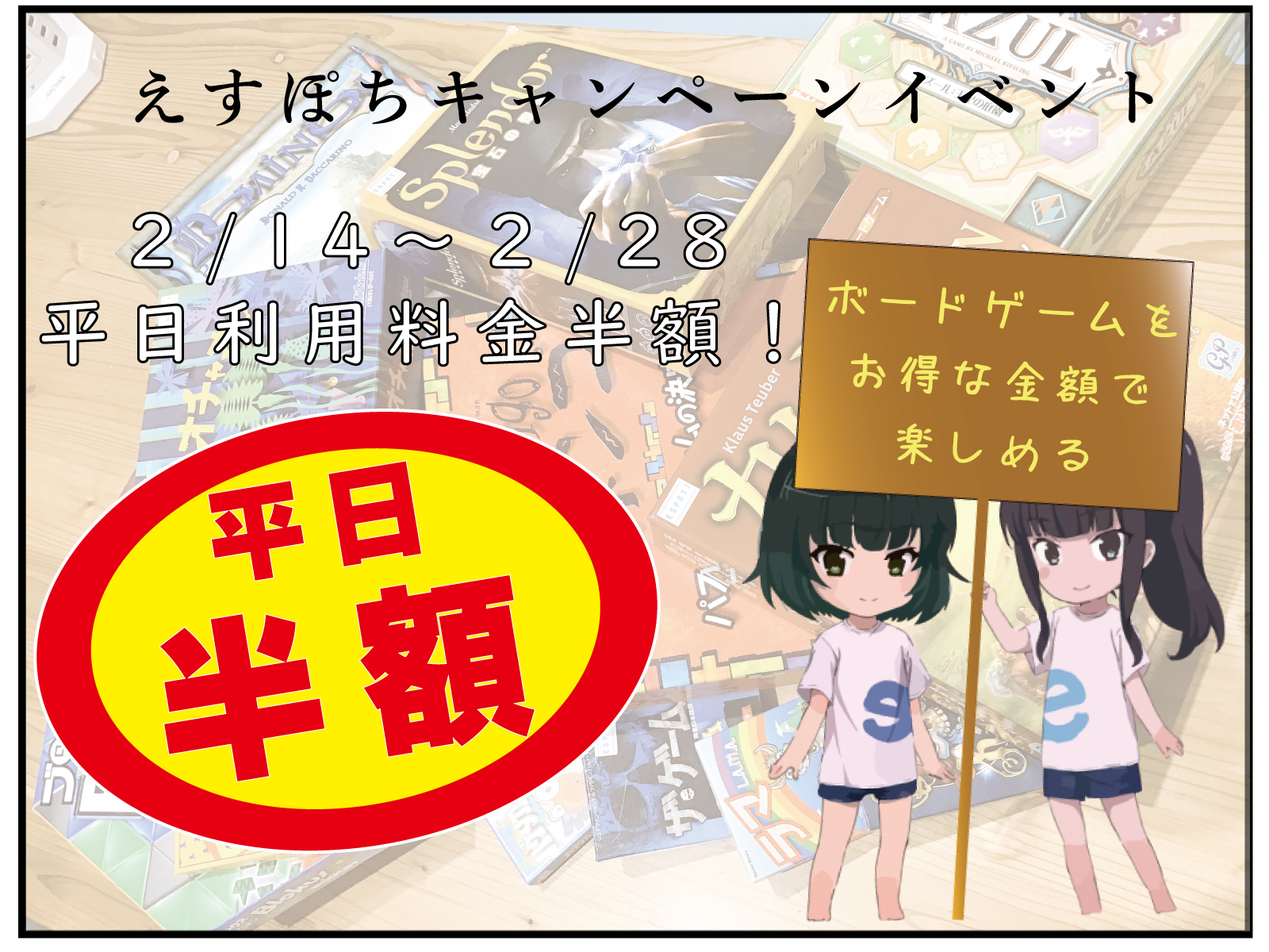 平日2/14〜2/28の間、平日の利用料金が半額になります。