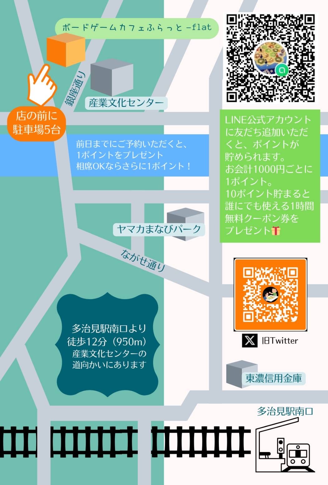 多治見駅から徒歩12分、店の前に駐車場5台あります。