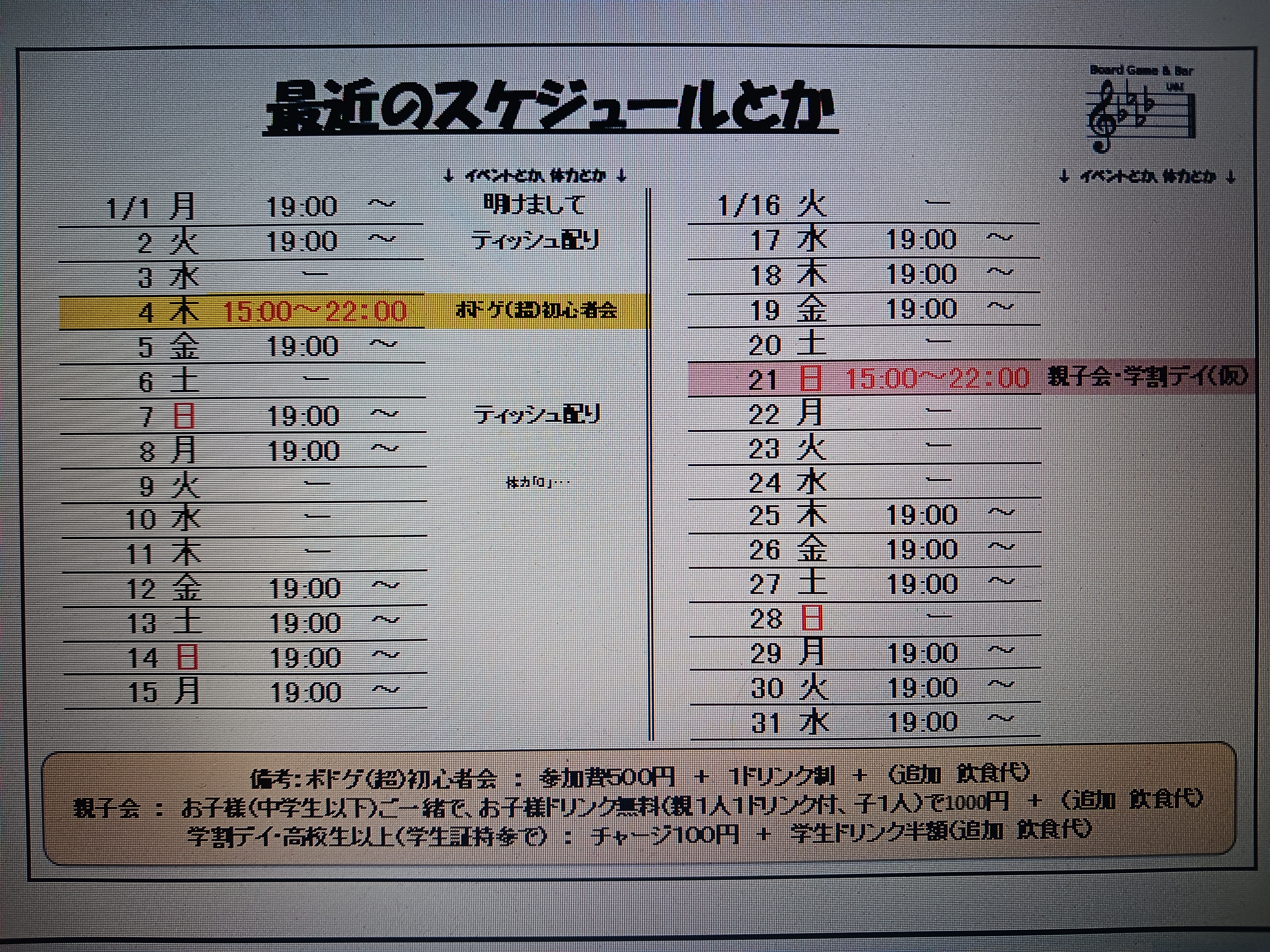 まぁ、それはともかく1月のスケジュール少し変更しました。こちらが修正版です。