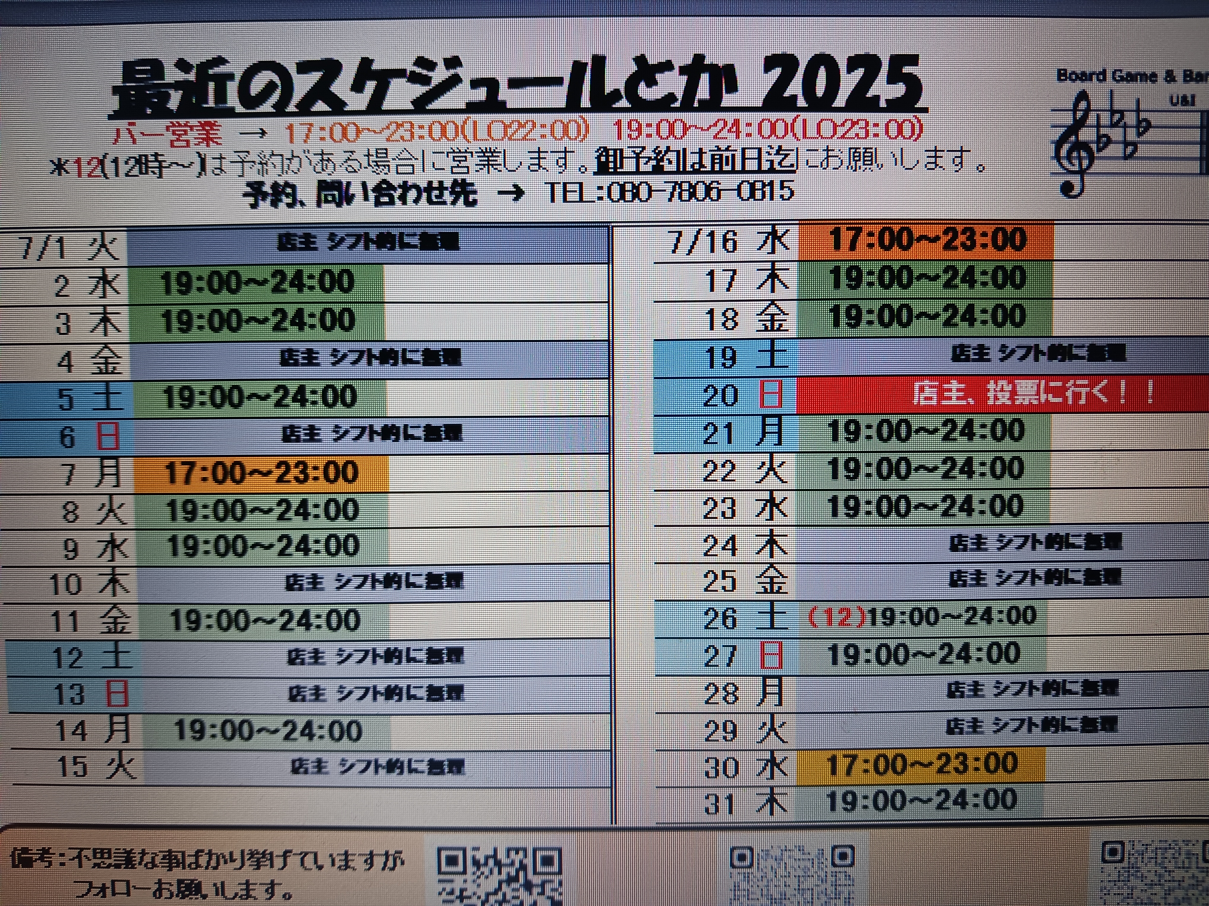 既に、7月ですよ。Fminorさん (7月 最近のスケジュールとか)