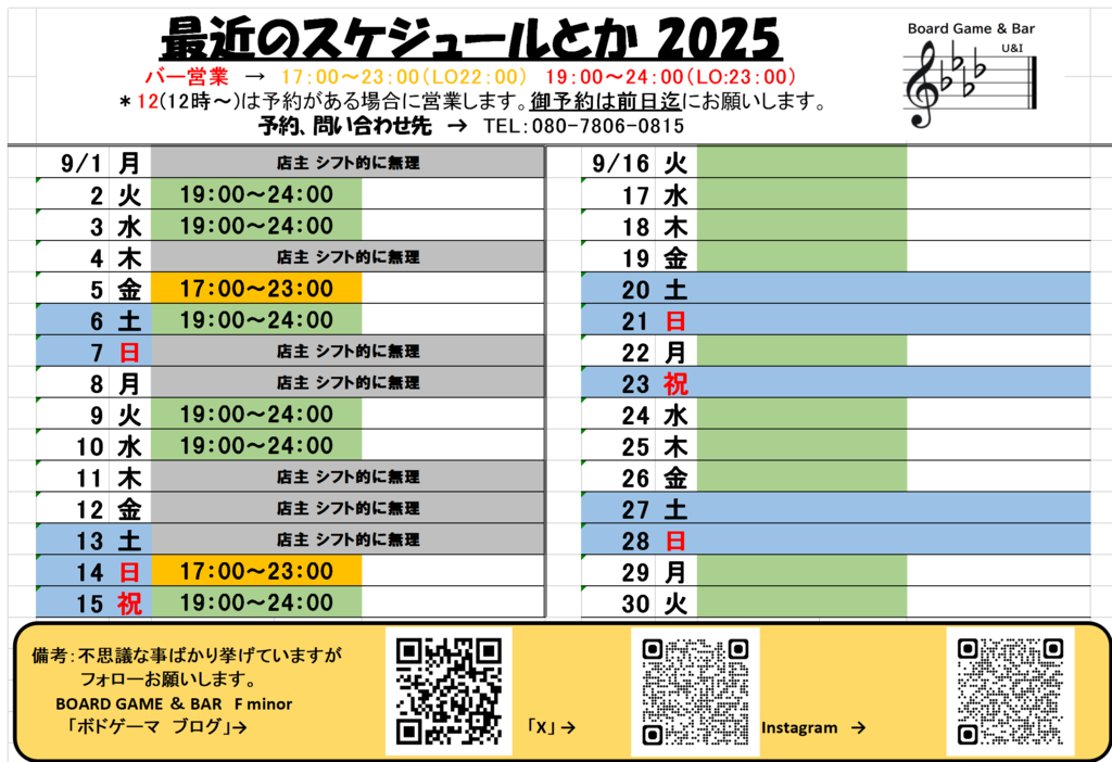 スケジュールとか。「とか」って・・・? (9月 最近のスケジュールとか)