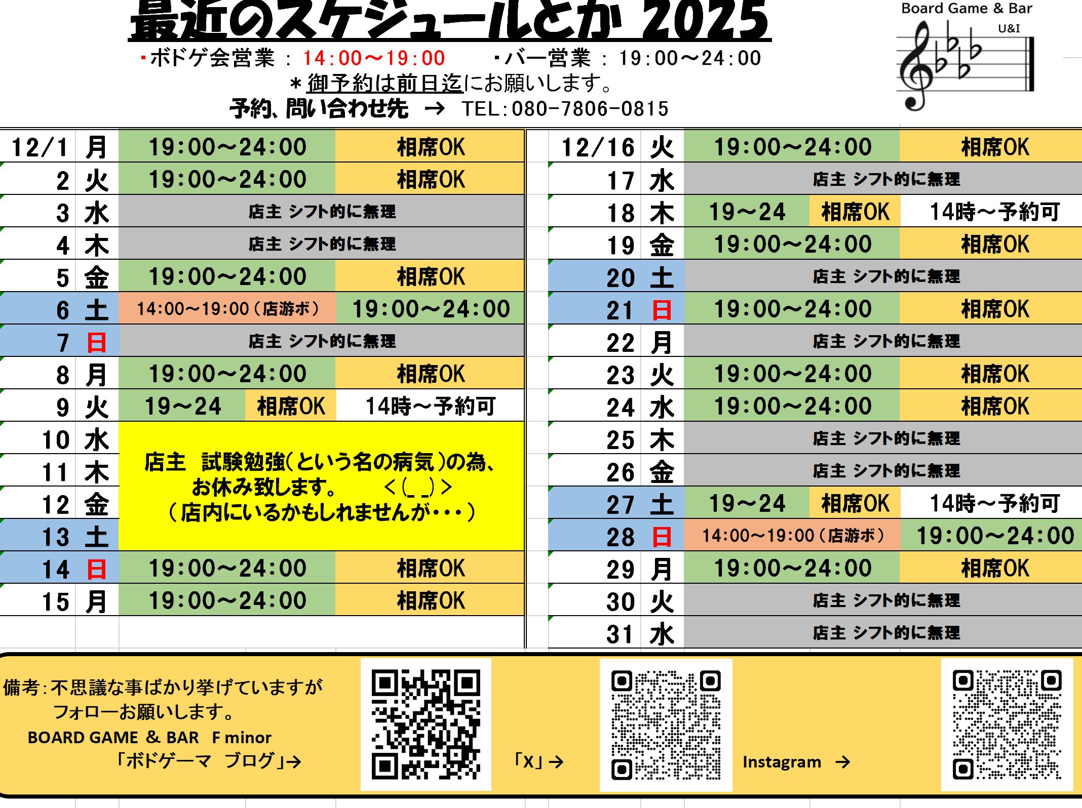 - 14日前2025年11月22日 01時36分頃私は豚になりたい (12月最近のスケジュールとか)当店、ボードゲーム&バーエフマイナーは・・・「好きなお酒(飲み物)と、好きな(ボード)ゲームを、好きな仲間(出会い)と、(時間の)心行くまま」を掲げ自己中心的にならない様に心掛けて参ったつもりですが、会計上のトラブルに遭いました。悔しさ等は全く無く、どの様にすれば改善され、トラブルが起こらない...19ページビュー