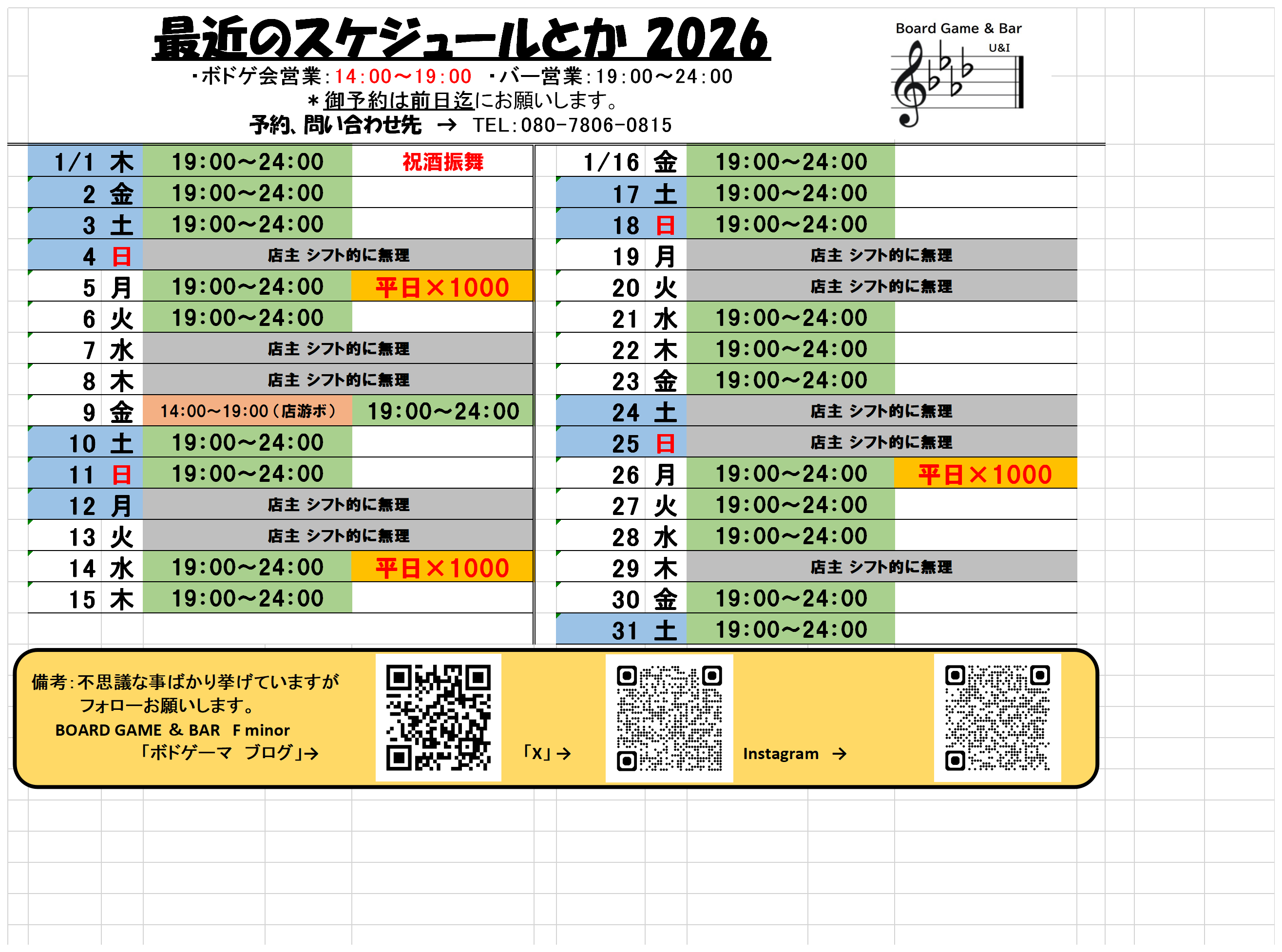 「平日×1000」:ボードゲームを遊ぶ時間で発生するチャージ料金を最大「1000円」まで。ご飲食料金は別途。