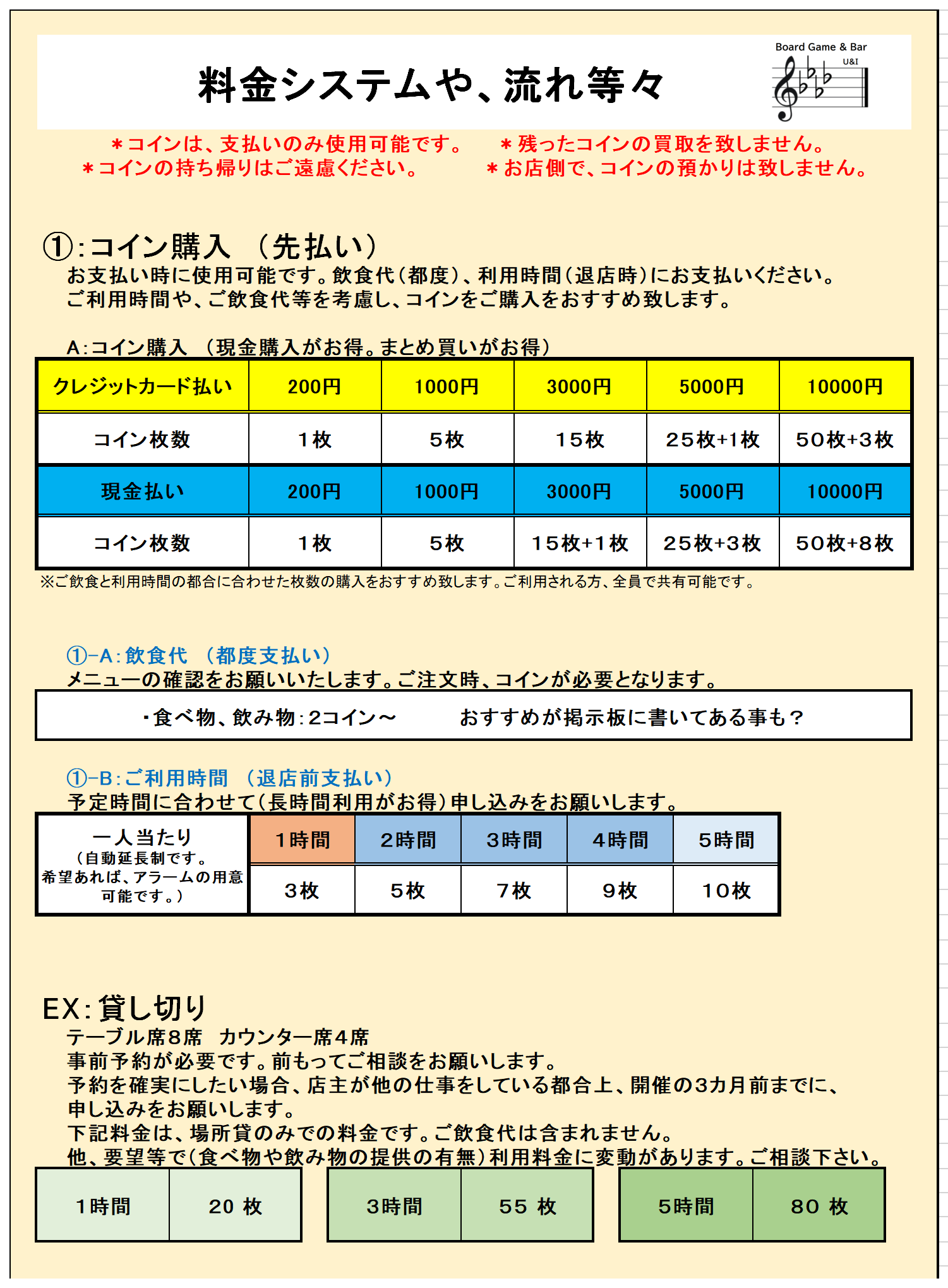 | 備考 | 店主、仕事の都合上、不定休です。ボドゲーマのブログで、確認お願いします。 また、「1日店長」「スペース貸し」等