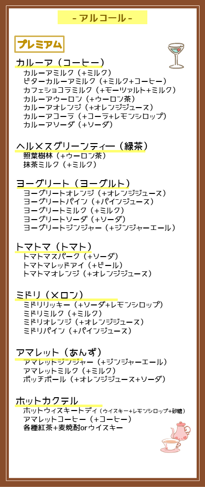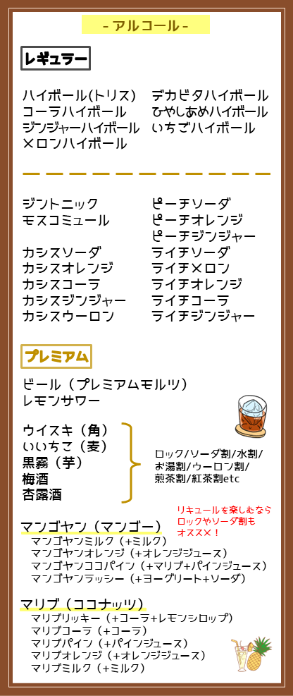 30分700円でソフトドリンク33種とアルコールの一部が飲み放題!(レギュラーコース)