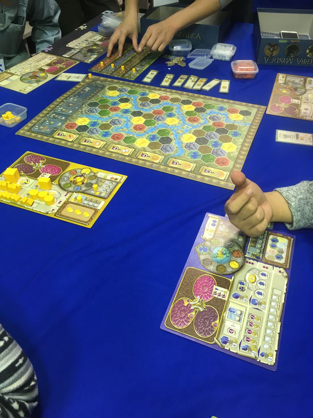 本日は色んなボードゲームをやるだけでなく、前々から気になってましたが中々説明書見ただけでは動きがわからなそーな「テラミスティカ」をインストしてもらえる場を設けました!