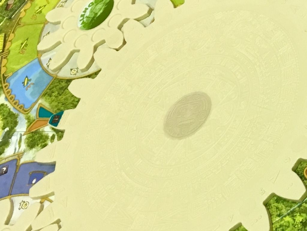 ゲームは盤面に大きな歯車があってこれが動くことによって(暦が動く)5つの都市の歯車も連動して動く仕組み!