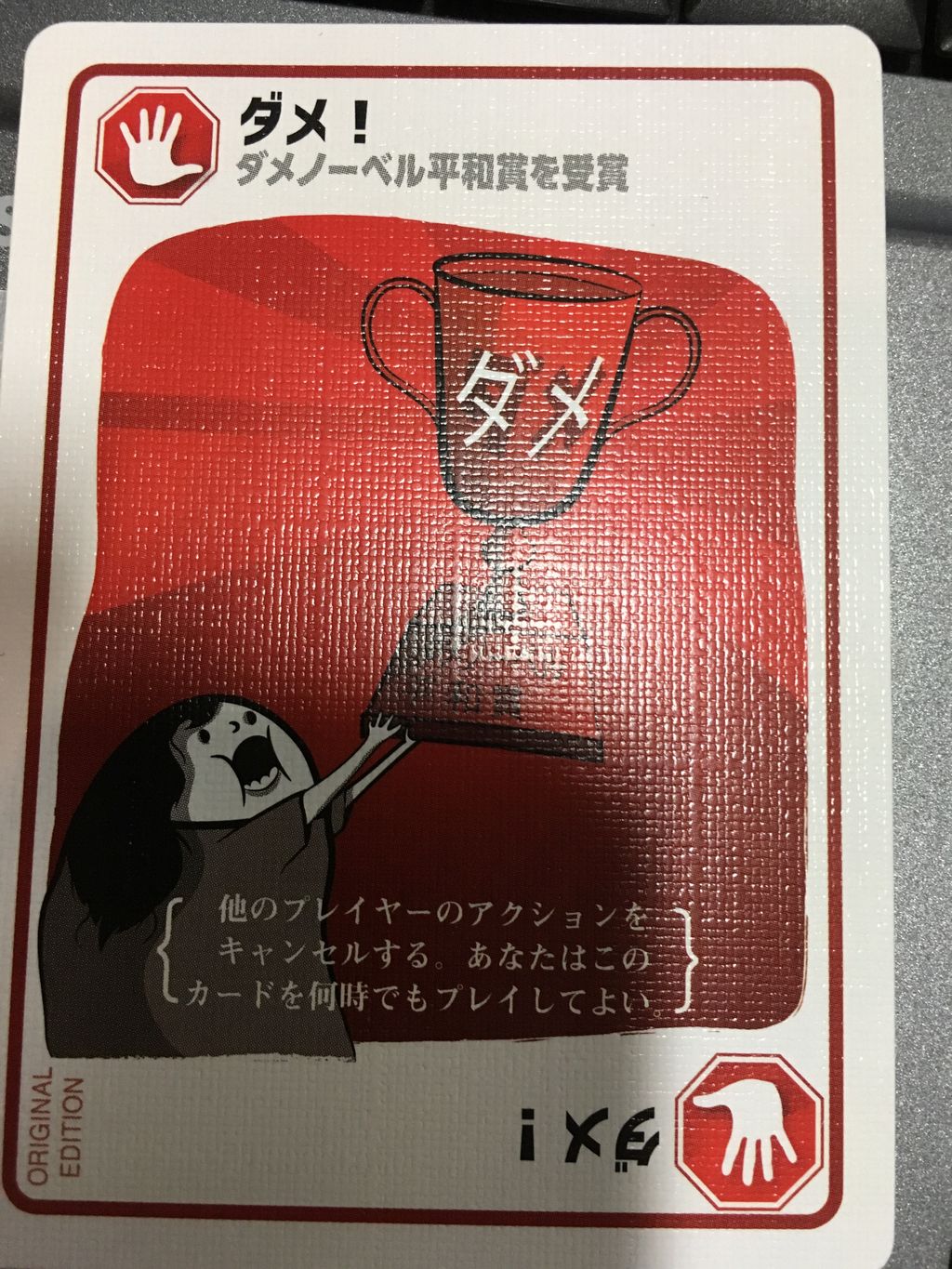 - 7年弱前2019年03月06日 19時20分頃2月23日開催 ボドゲ部 こねこ は爆発しちゃだめぇ!!10名様ほど参加しました今回のボドゲ部その中でも「こねこばくはつ」が発売になってこれ以外と面白いよ!なのでちょっと紹介!積まれた山札からカードを引き爆弾をくわえた子猫カードを引き当てると爆発してゲームオーバーとなるこのゲーム!一見UNOのような、またはテストプレイしてないみたいな感じですがノン...74ページビュー