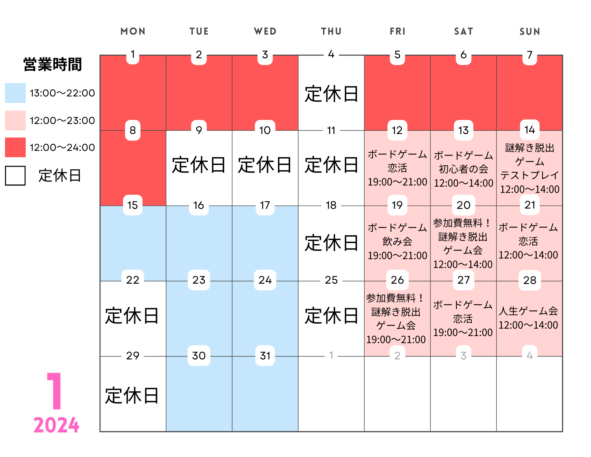 - 約2ヶ月前2025年12月31日 16時04分頃1月営業日※営業時間は変更になる場合がございます。最新の営業時間はGoogleにてご確認下さいませ【年末年始の営業、料金につきまして】Hideoutは年末はお休みをせず、年始は3日から営業致します!🎊⛩️🎊〜1月4日(日)の営業日に関しては1名様毎に通常料金とは別途+500円を頂戴いたします。(1時間利...27ページビュー