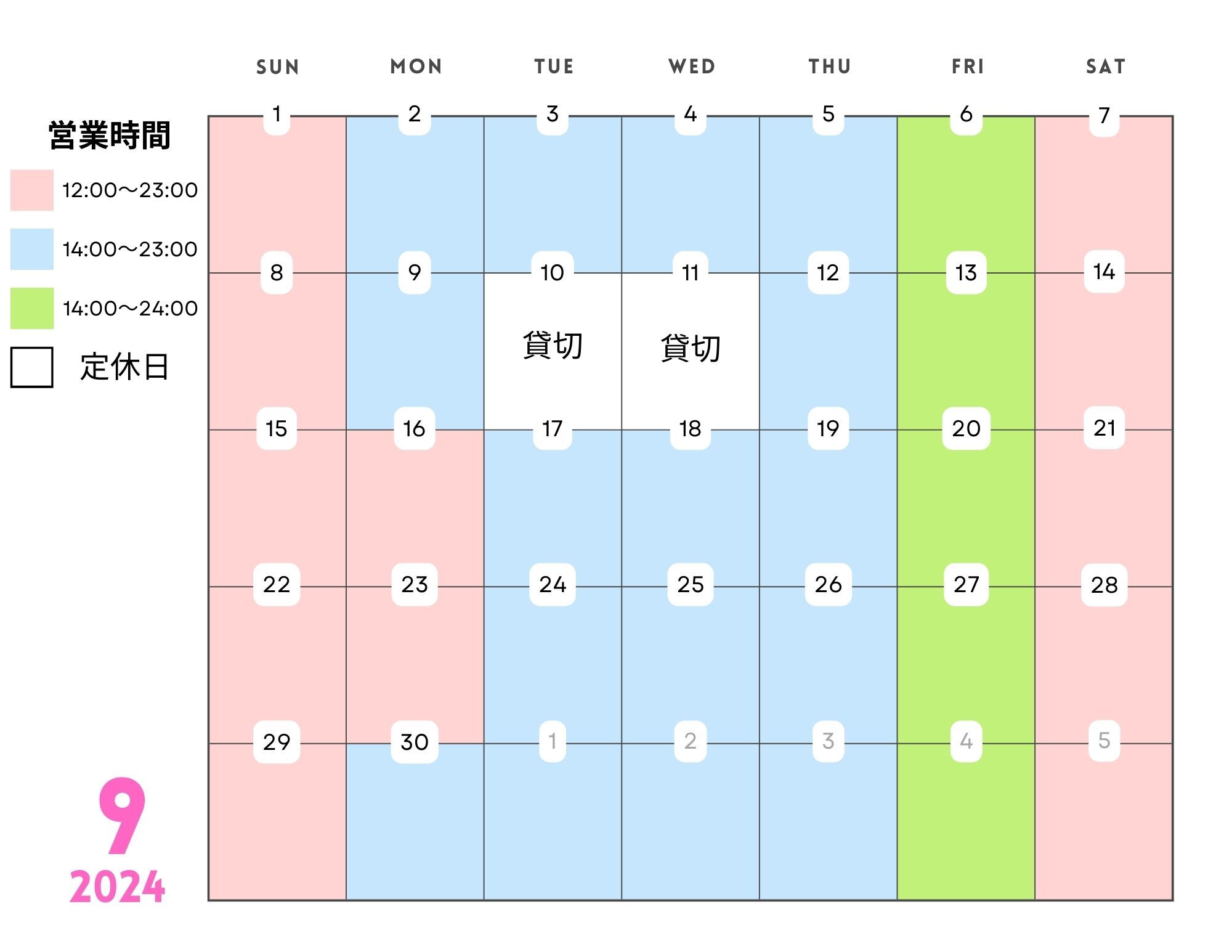 平日の営業時間が13時〜22時→14時〜23時に変更になりました!