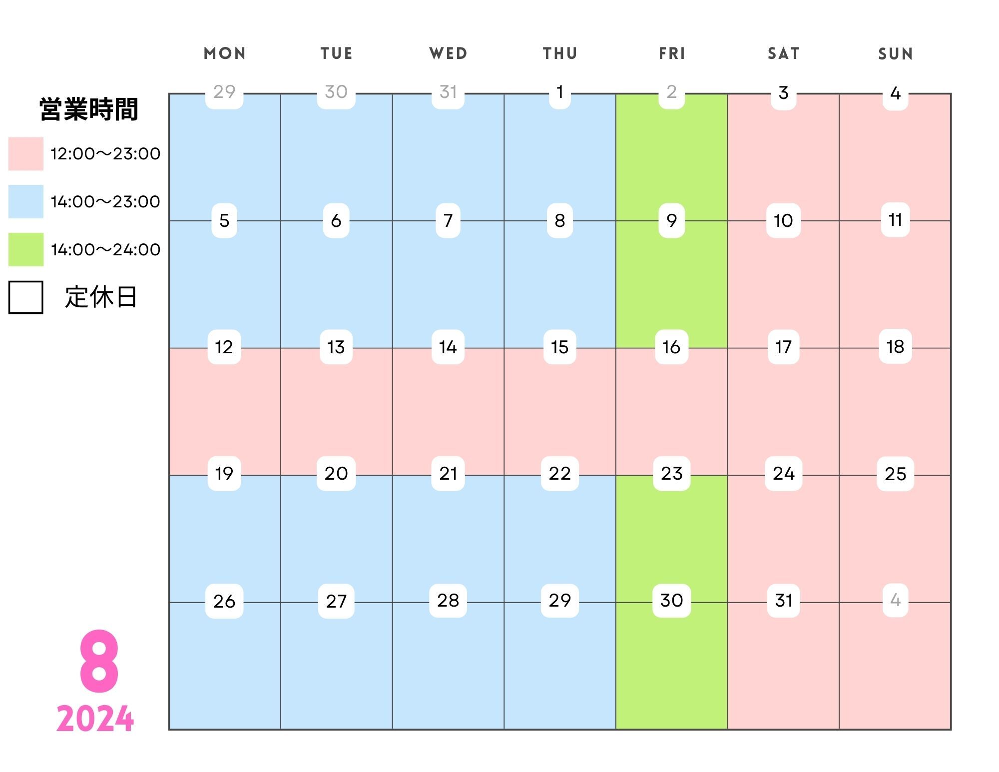 8月、9月営業予定日です!