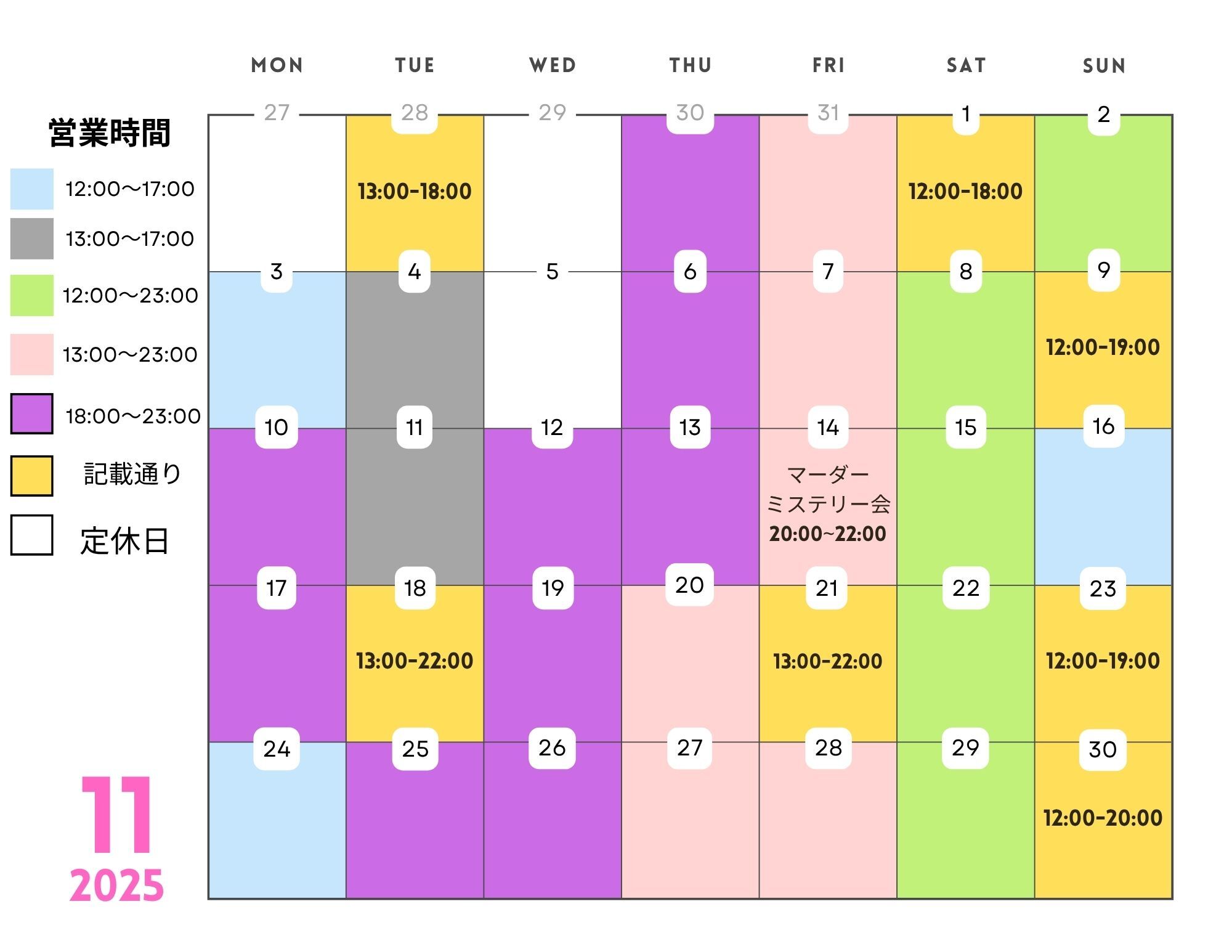 - 28日前2025年11月07日 16時35分頃11月営業日※変更になる場合がございます。最新の営業時間はGoogleにてご確認下さいませ41ページビュー