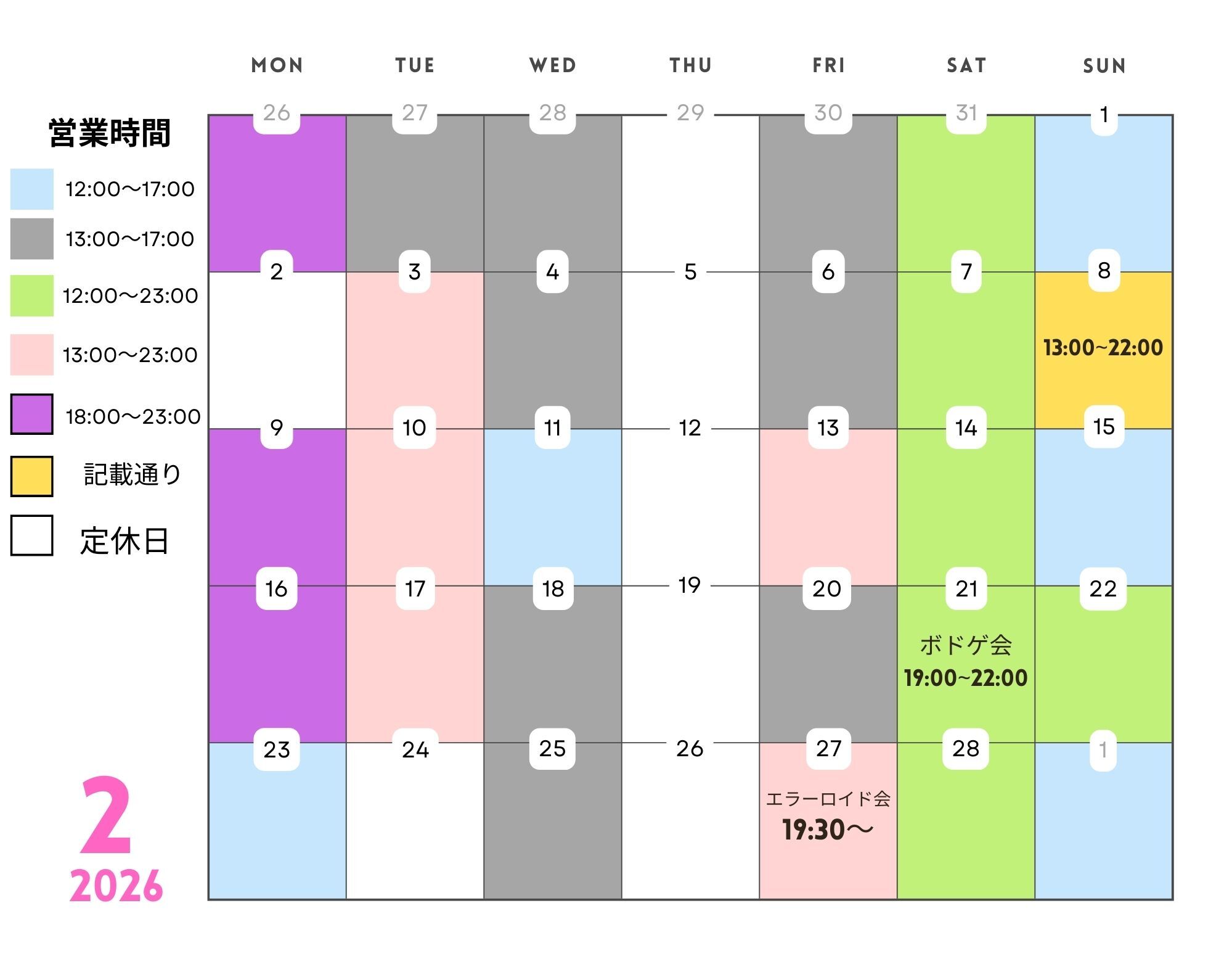 - 約15時間前2026年01月28日 14時21分頃2月営業日※営業時間は変更になる場合がございます。最新の営業時間はGoogleにてご確認下さいませ0ページビュー