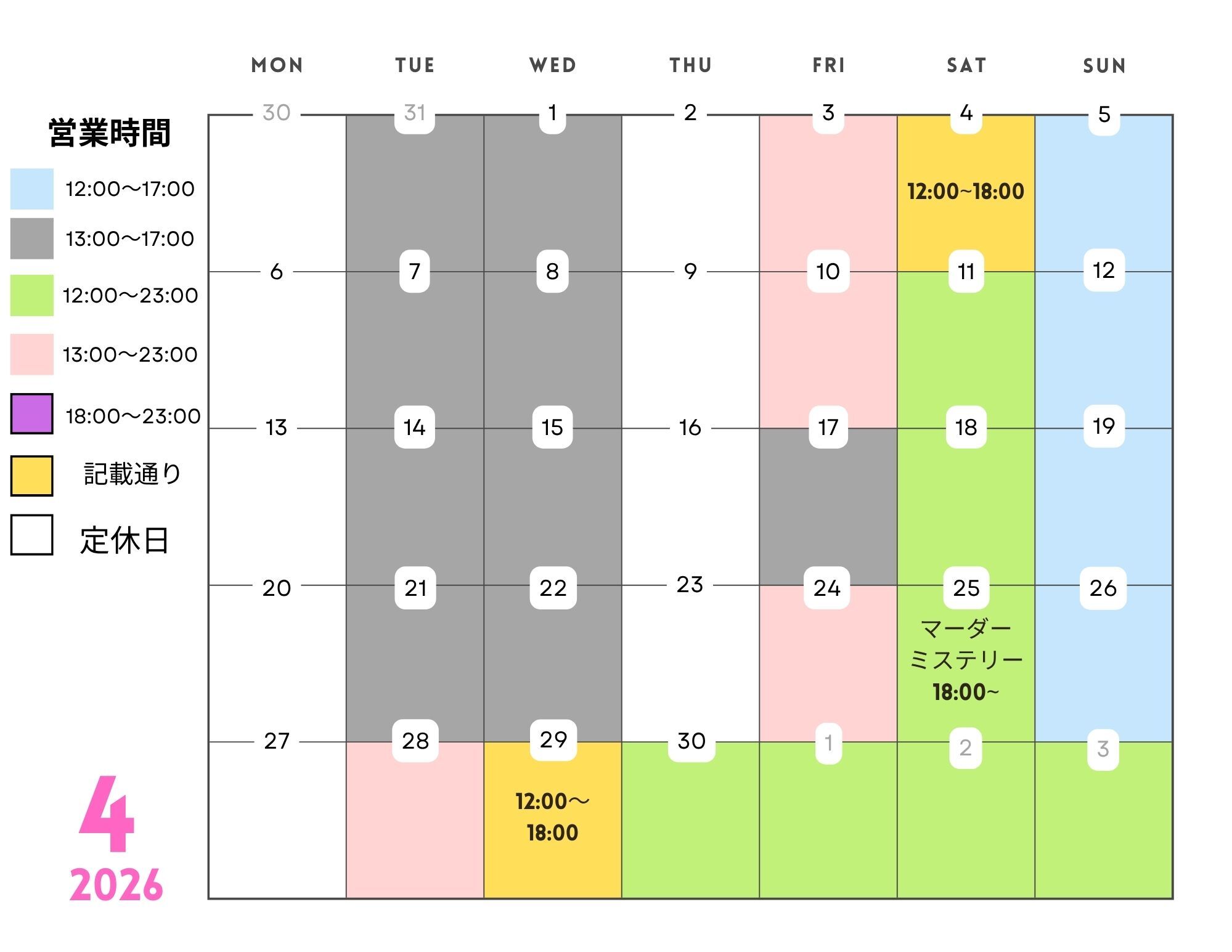 4月営業日