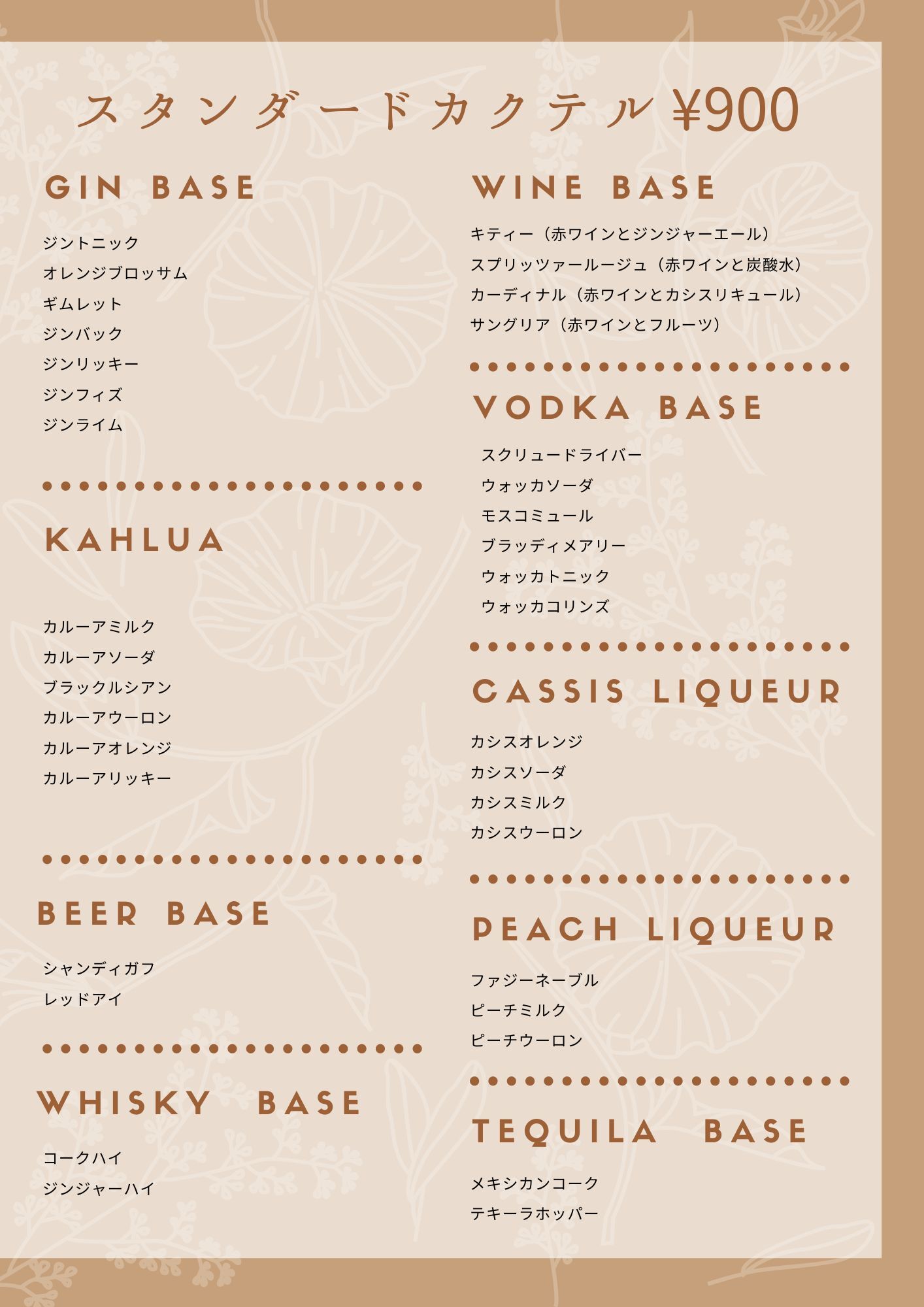 ワンドリンク 700円〜※1h毎にワンドリンクオーダー制(税込価格で表示しております)