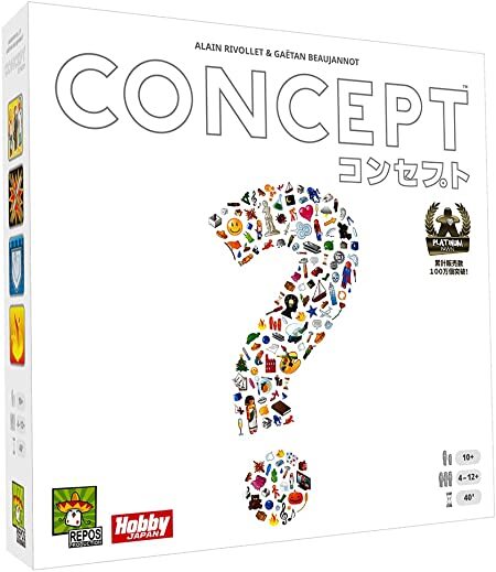 お題のコンセプトをボードのアイコンで示し、当ててもらうというゲームです。