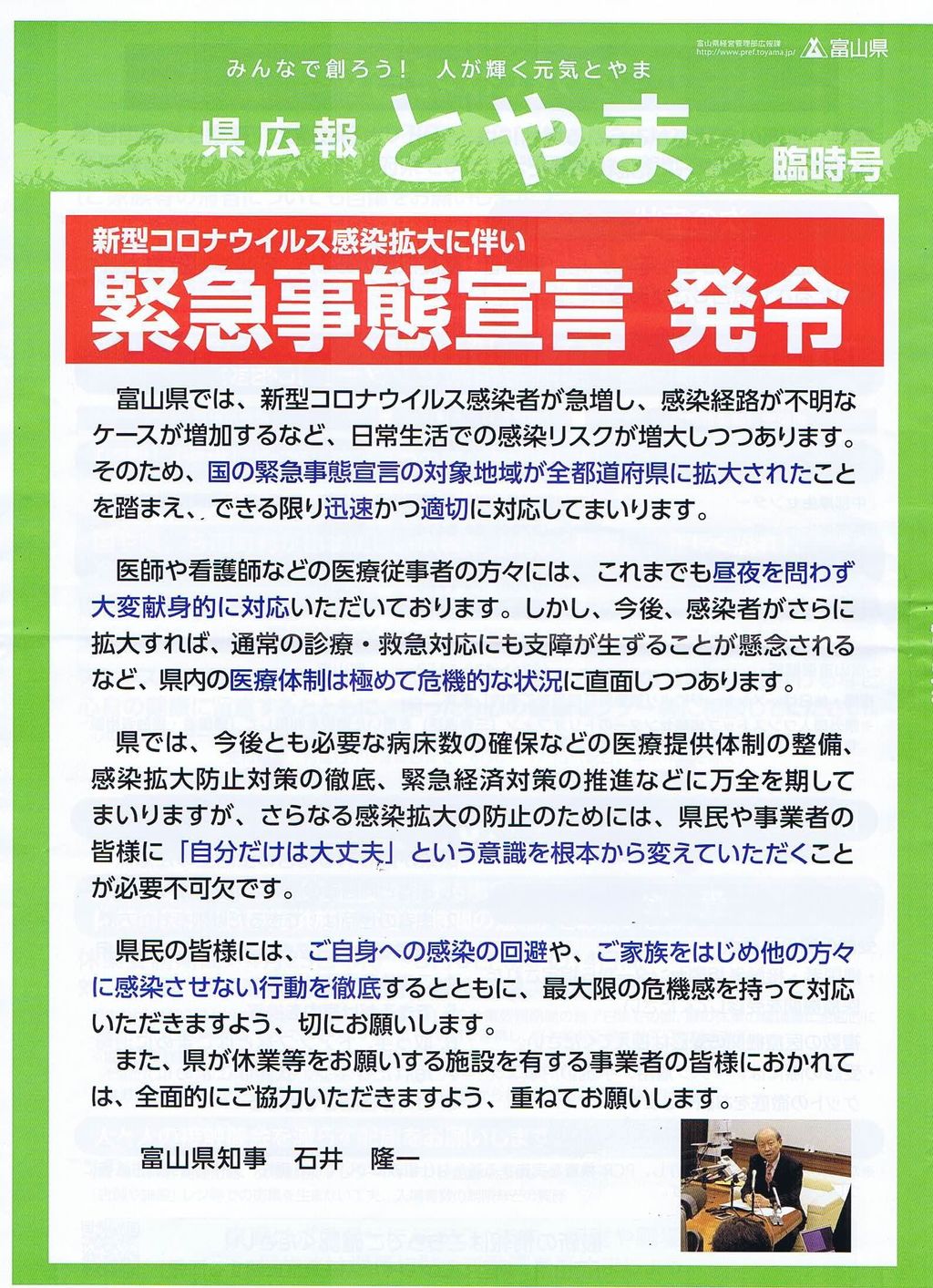 【重要】新型コロナウィルスへの県の休業要請を受けての対応
