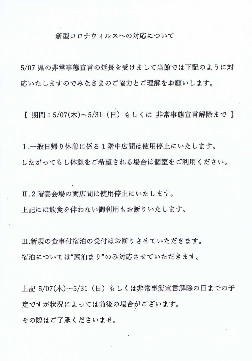 5/07県の非常事態宣言の延長を受けまして当館では下記のように