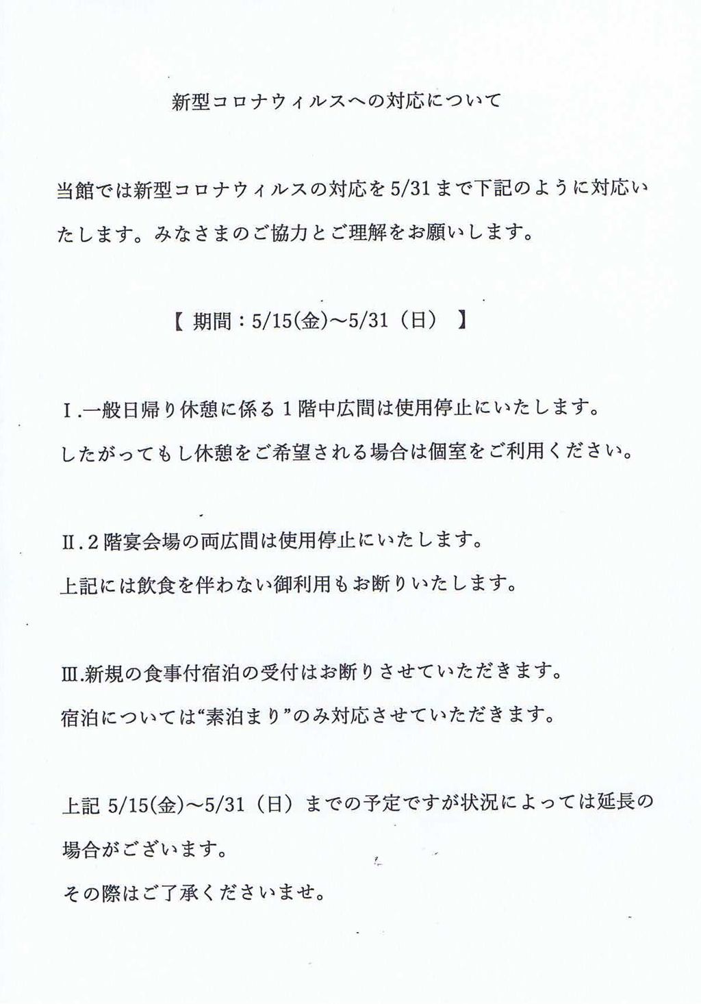 5/15(金) 県の休業要請解除後の当館のコロナウィルス対応について