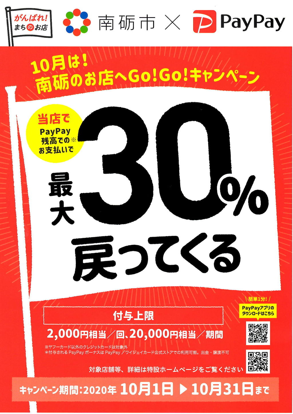 10/01 本日より”PayPay”はじめました。-『南砺のお店へGo!Go!キャンペーン』-