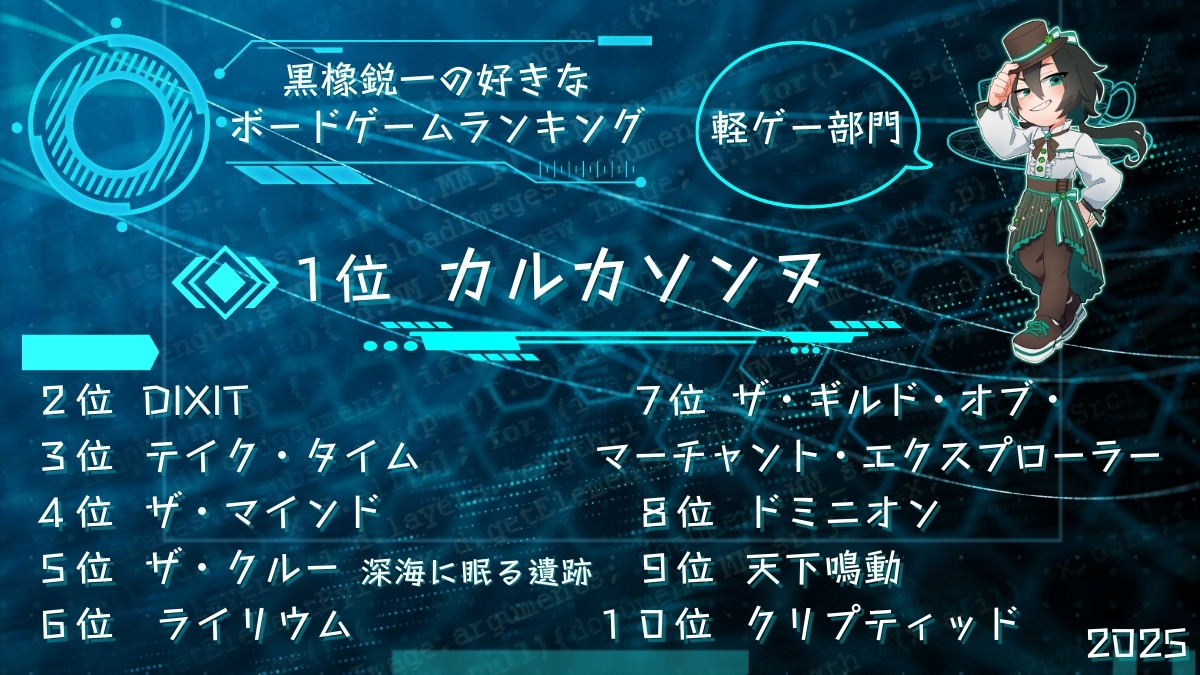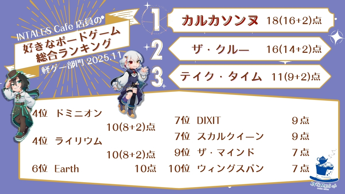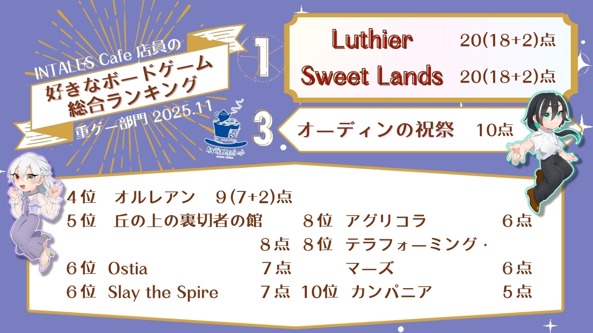 今年は重ゲーとそれ以外のゲームにランキングを分けて作ってみました!(INTALES Cafeのスタッフは大の重ゲー好きなので…)