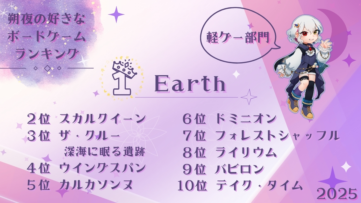発表はYouTubeで行っていたのでこちらも見ていただけると、各ボードゲームの簡単な説明もしているので、どんなボードゲームがランクインしているのかがわかると思います。