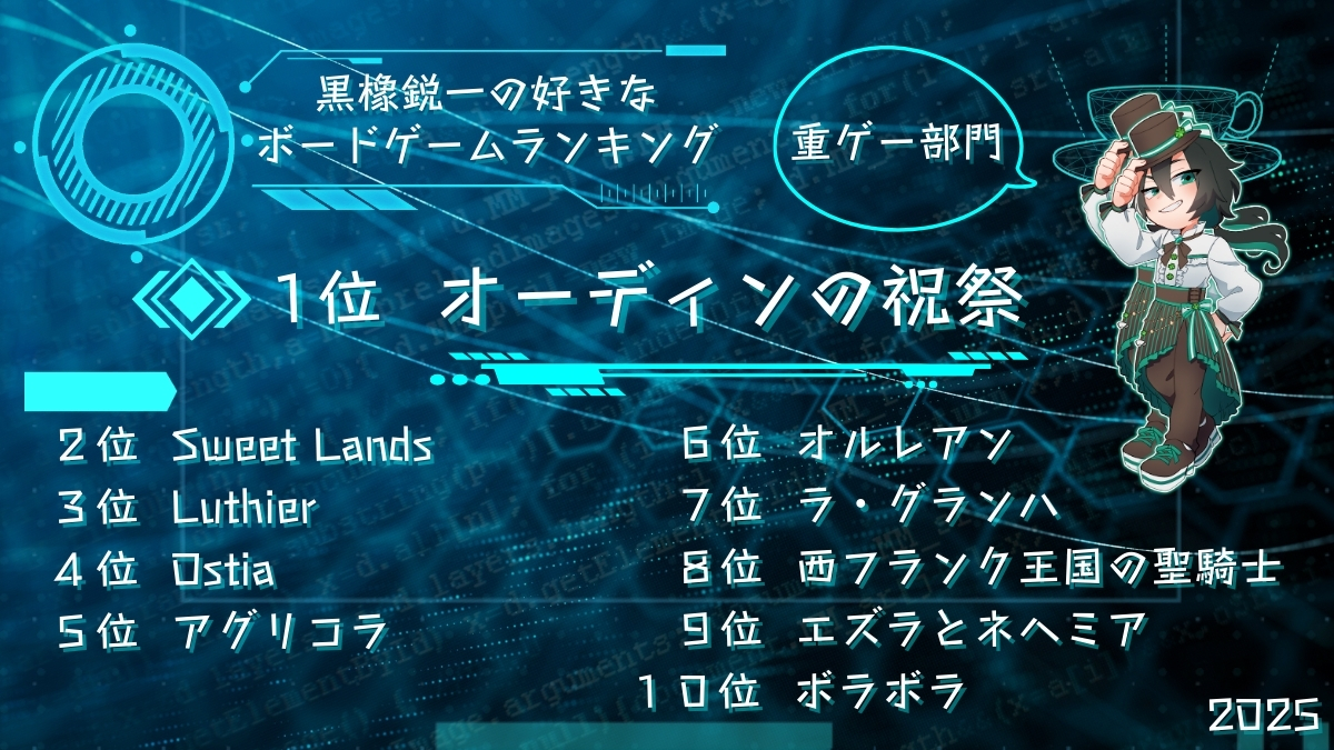 ということで、黒橡鋭一の重ゲー部門の1位は、去年と変わらず「オーディンの祝祭」でした!