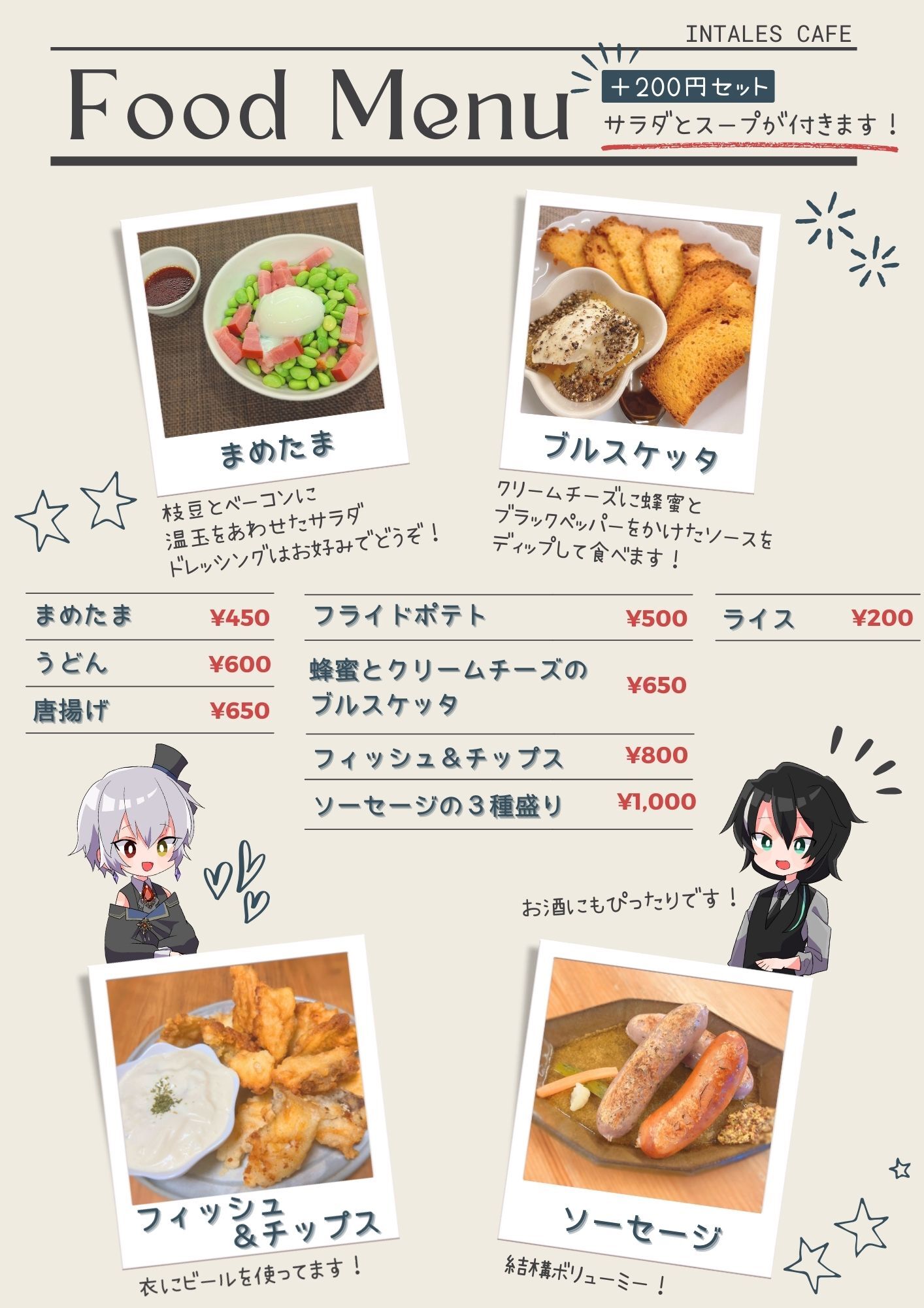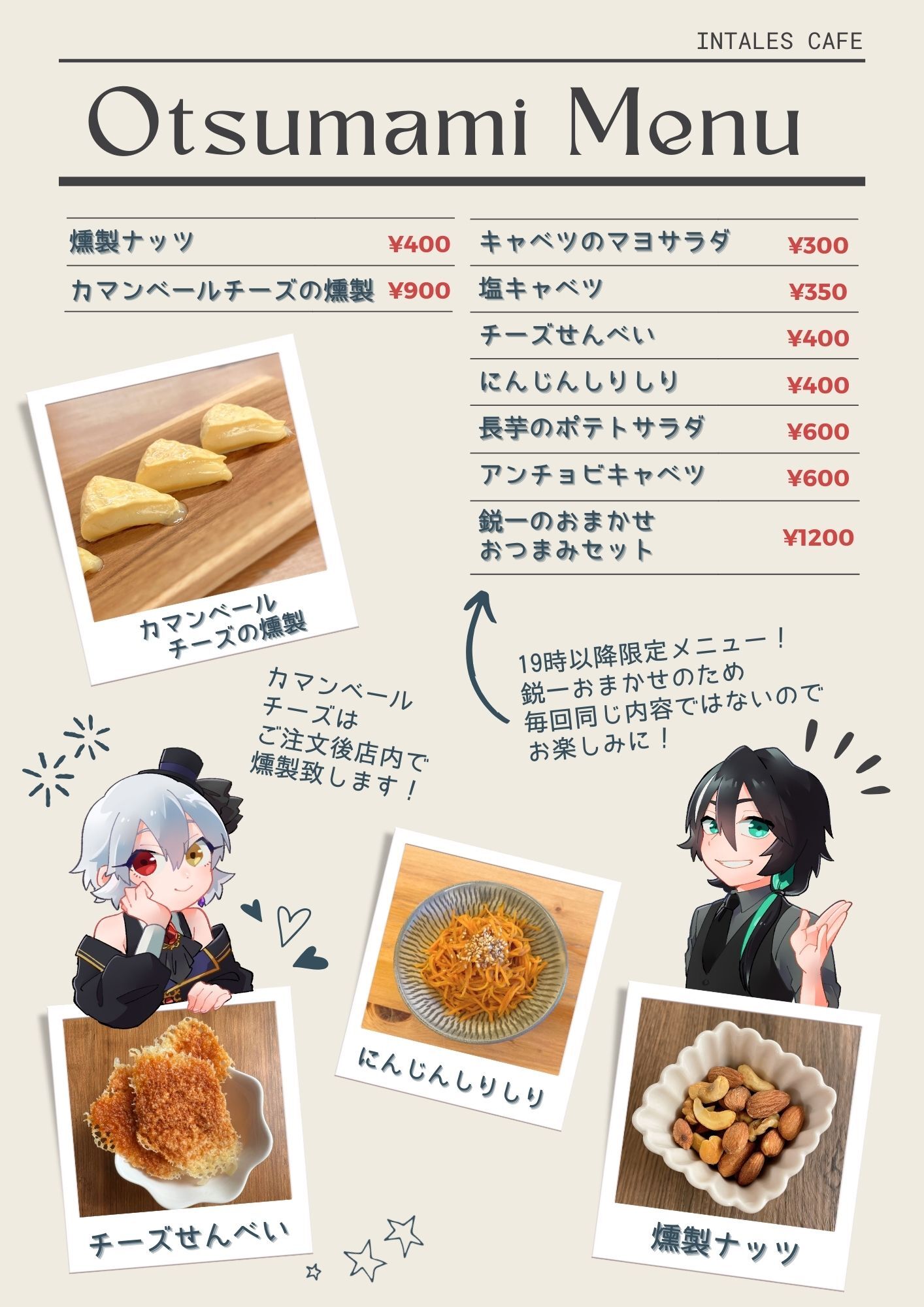 「 お食事、おつまみ 」※月曜日・水曜日は提供ございません
