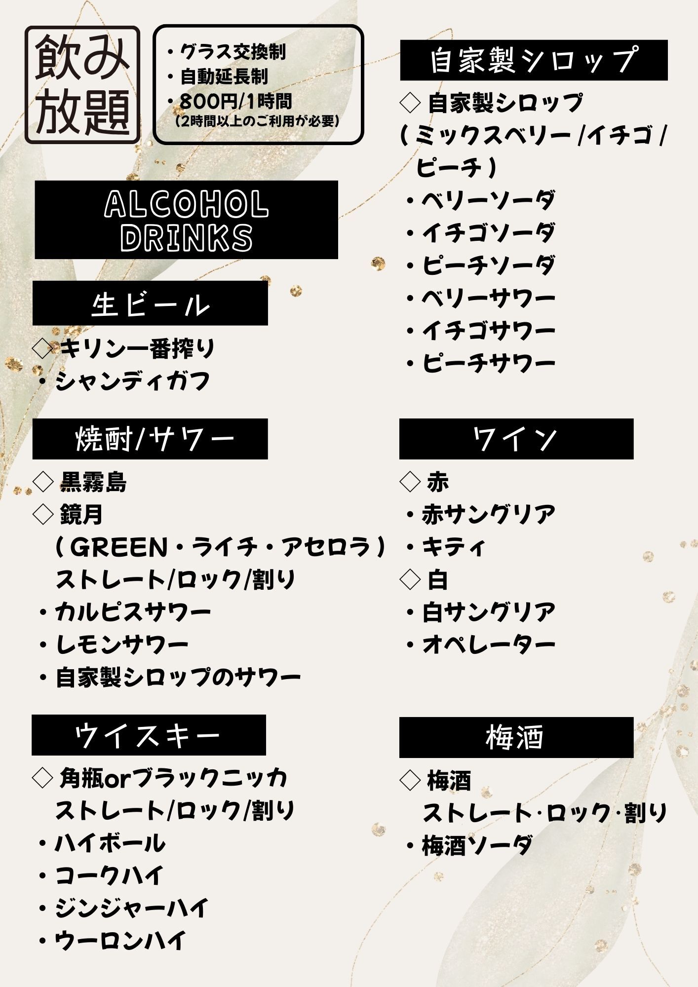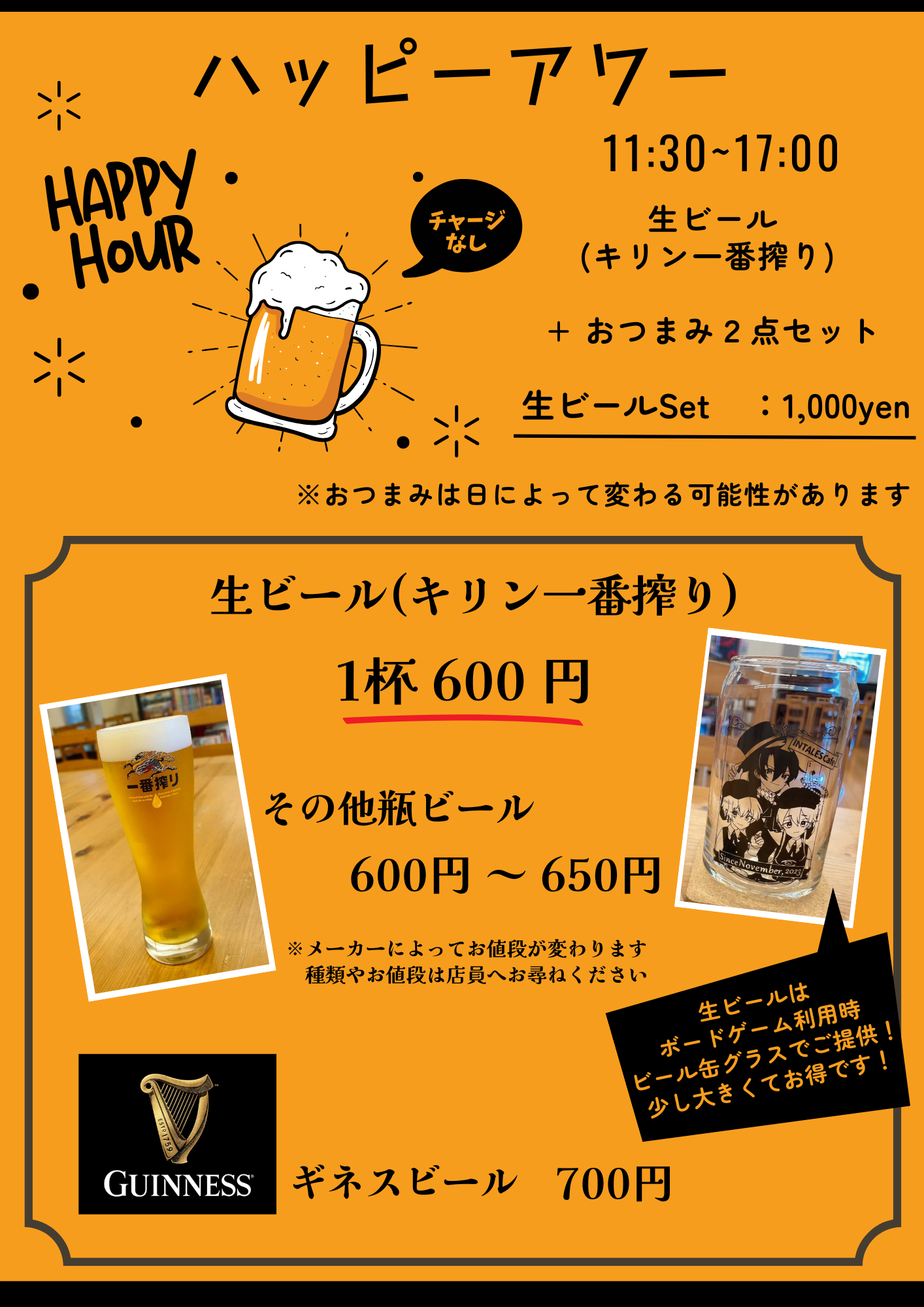「 ボードゲーム飲み放題メニュー 」