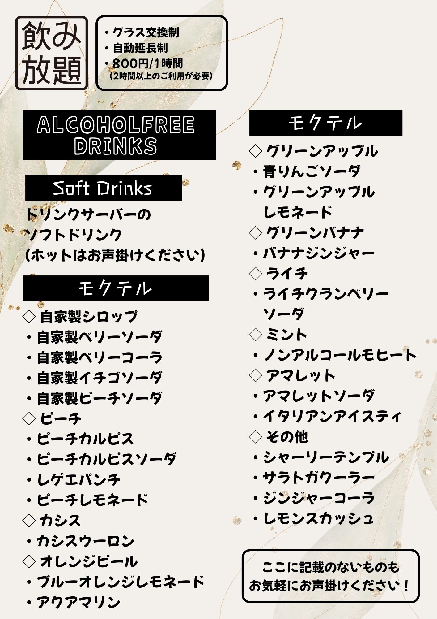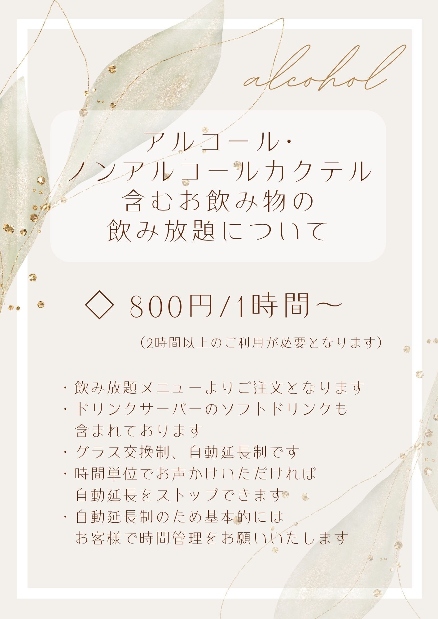 「ソフトドリンク、アルコール」