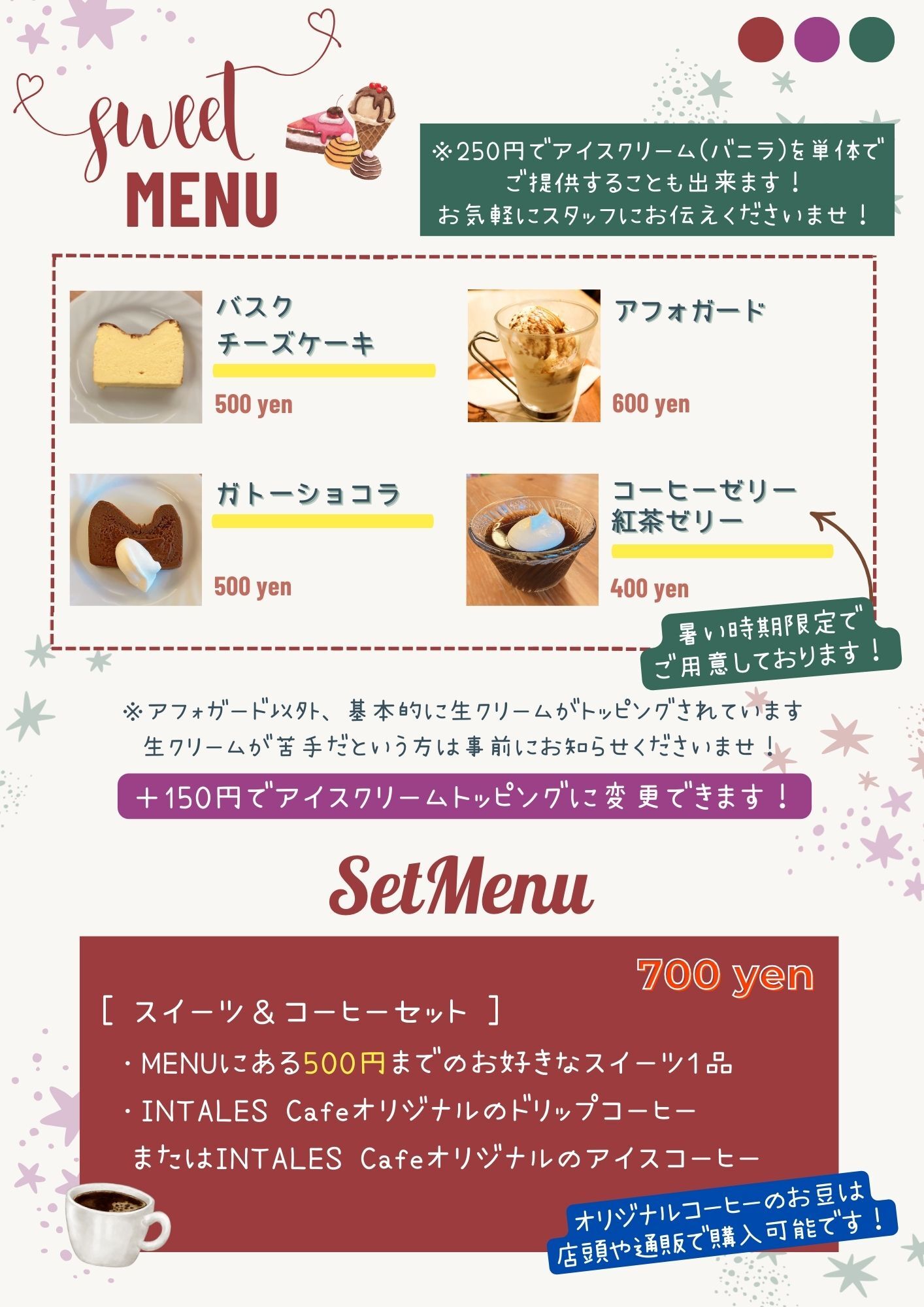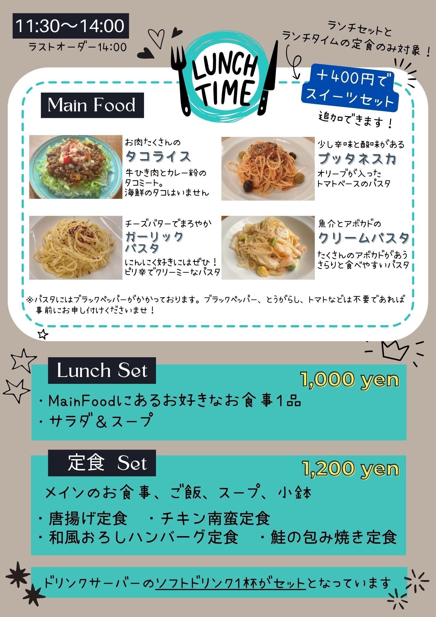 「ランチセット・スイーツ・セットメニュー」※月曜日・水曜日は提供ございません