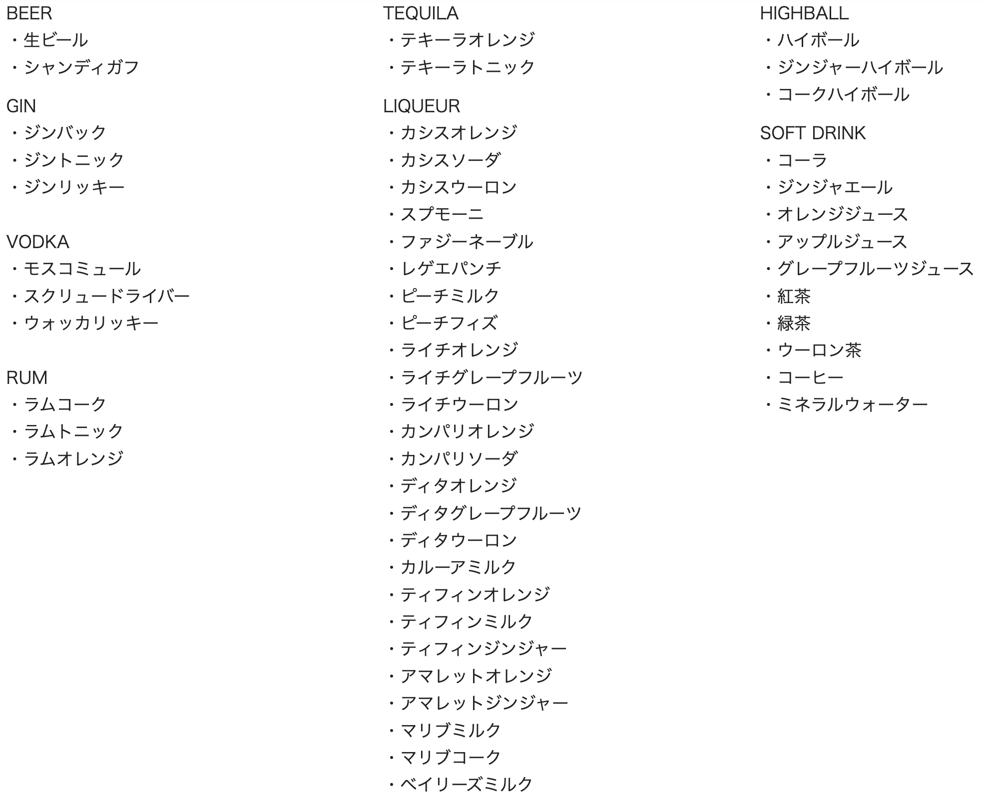 食べ物のみ持ち込み自由(お飲み物の持ち込みはご遠慮ください)