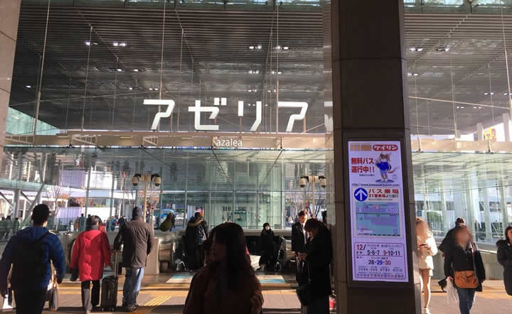 降りると目の前に、アゼリア地下街への入り口が見えるので、そちらを右へ進んでいく