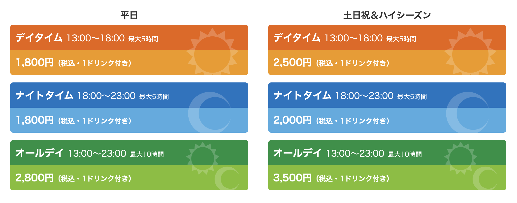 16時〜23時の最大7時間遊べちゃう「平日限定アーリーイン」学割もやってます!詳しくはこちら▶︎