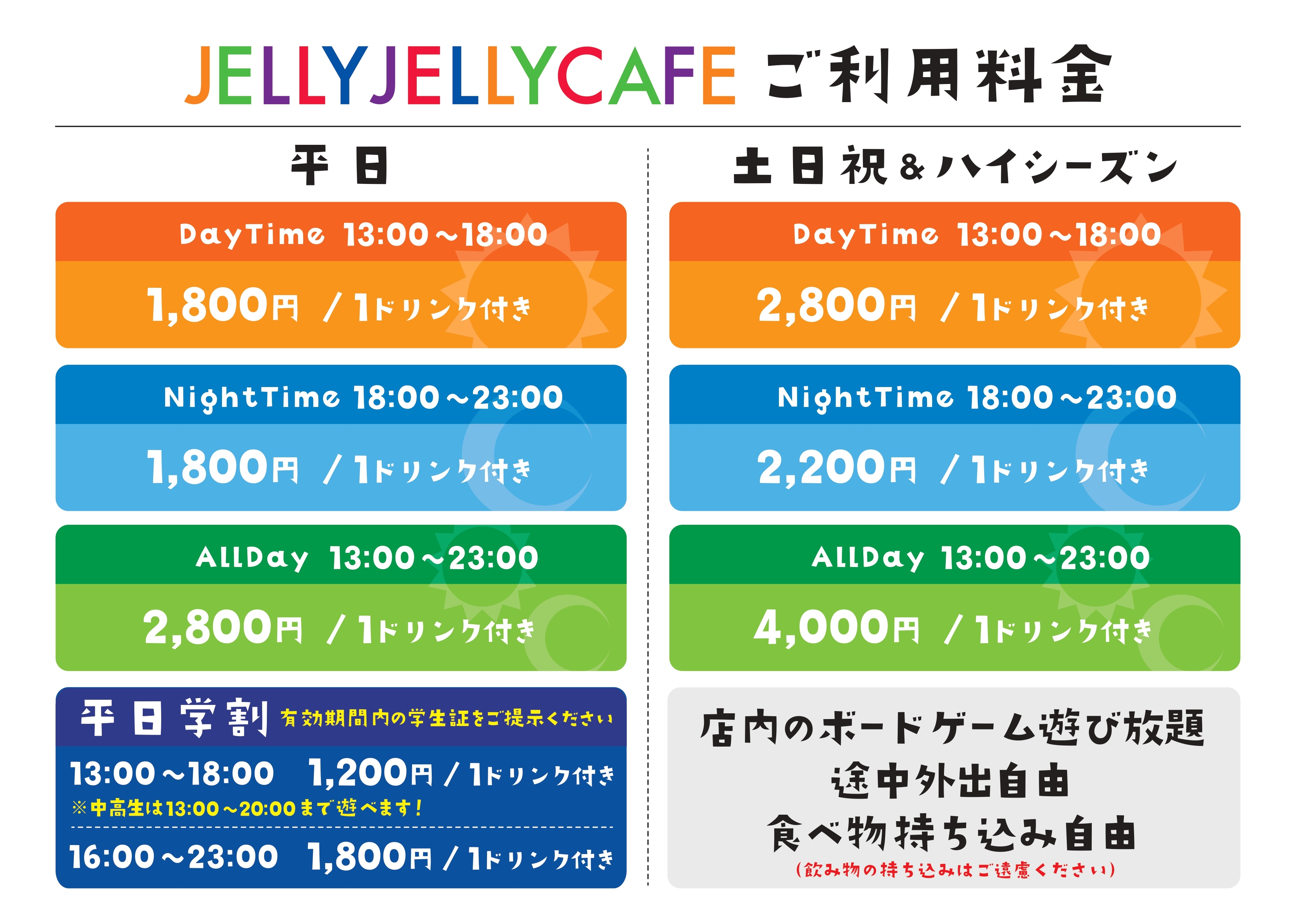 平日のデイタイム(13:00〜18:00)に限り、学生証提示で通常1,800円1ドリンク付きのところ、1,200円1ドリンク付きでご利用いただけます。詳しくはこちら