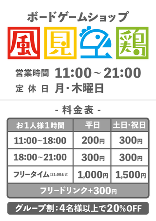 臨時休業と営業時間変更のお知らせ。ボードゲームショップ風見鶏