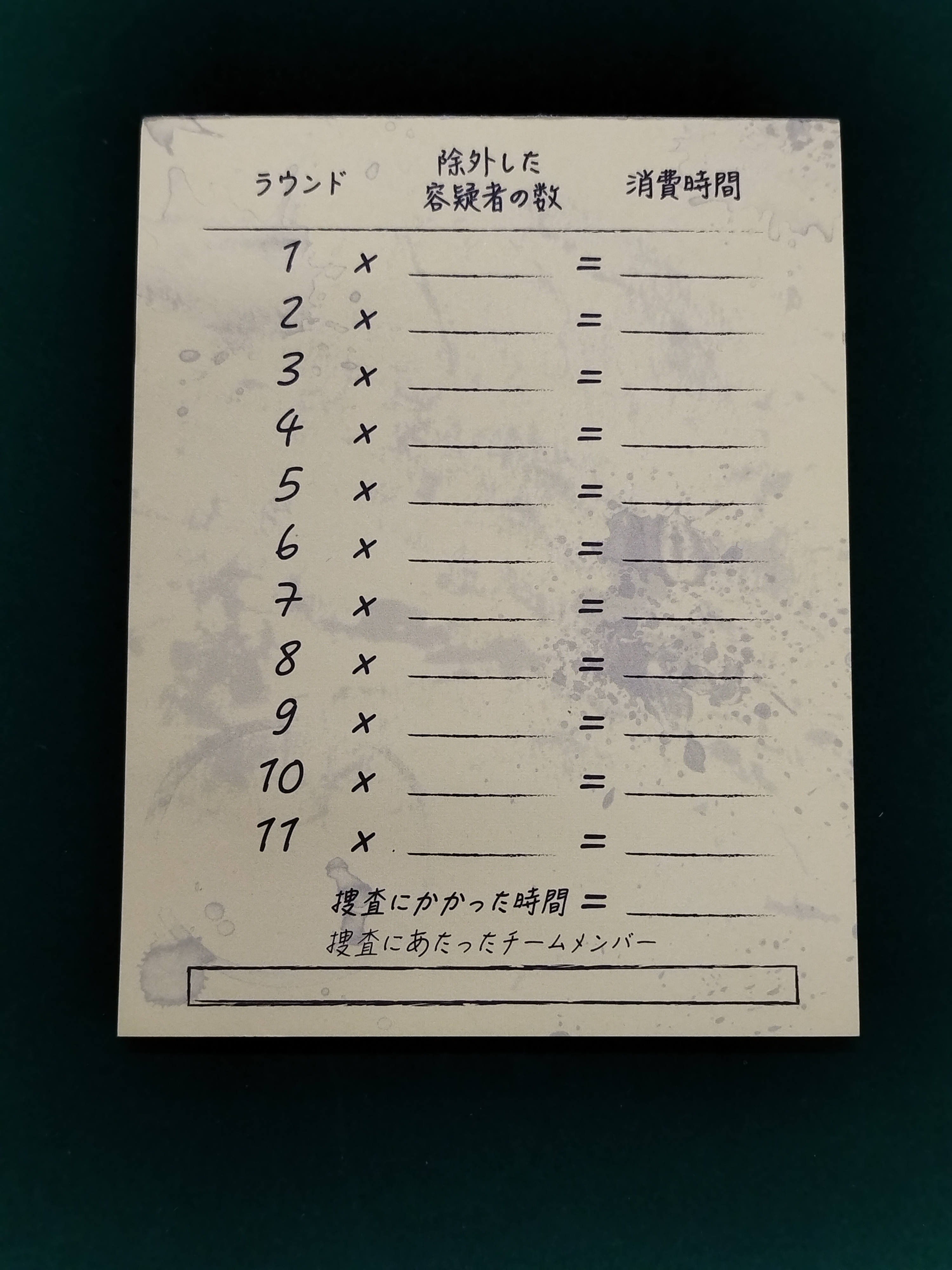 そうして各ラウンドで外せた容疑者の枚数にラウンド数を掛けて犯人特定までに掛かった時間でベストスコアを目指すというゲームです!