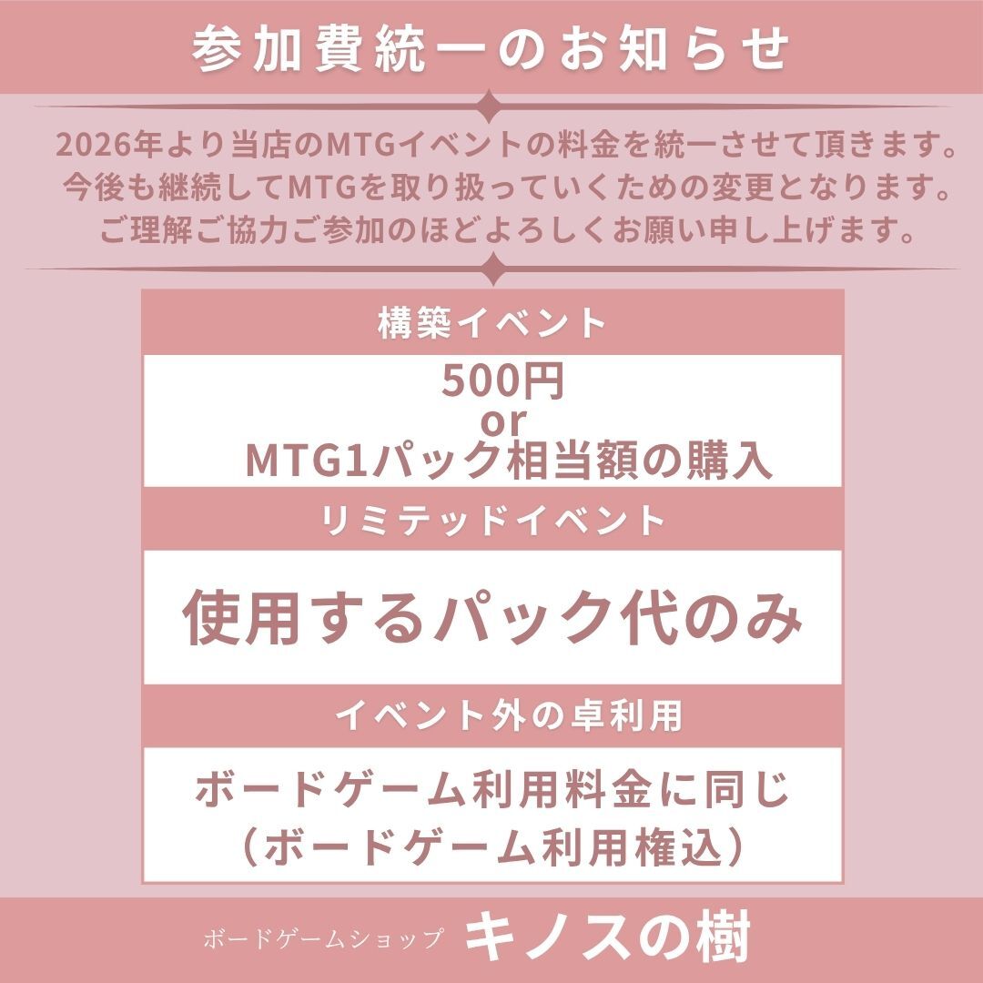 最後に当店におけるMTGイベントの参加費に関してお知らせします。