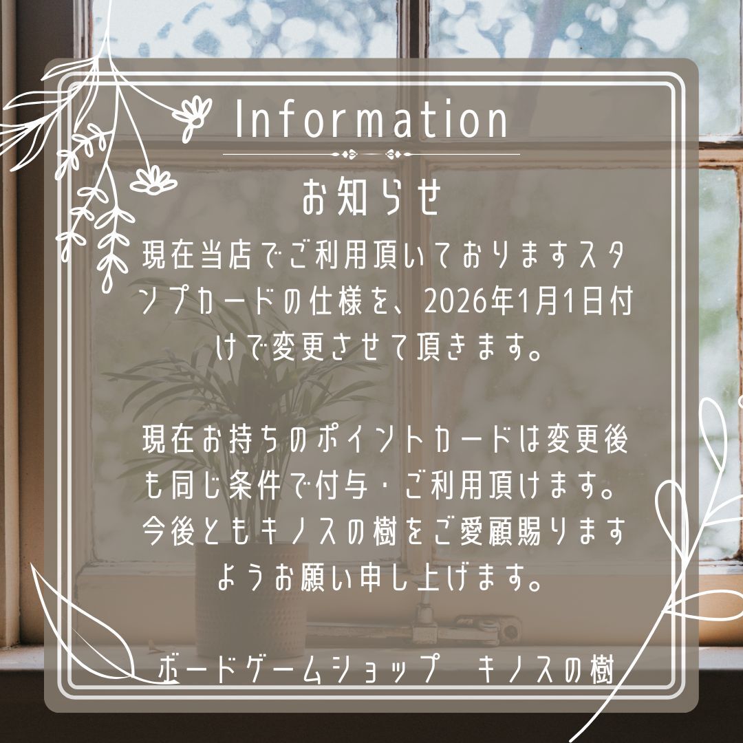 - 約2年前2023年10月01日 17時23分頃価格改定のお知らせいつもキノスの樹をご利用いただきましてありがとうございます。店主のいつきです。2023年10月1日付けで、ボードゲームスペース料金の価格改定を行いましたのでお知らせします。中学生料金(改定前)1時間500円/上限1000円(改定後)終日500円以上より一層のご愛顧賜りますようお願い申し上げます。201ページビュー