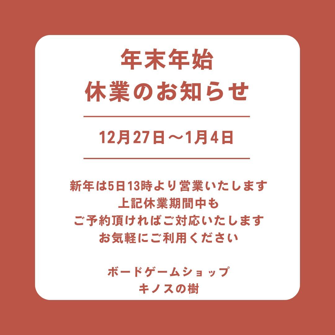 - 16日前2025年11月19日 15時50分頃年末年始の休業日及び2026年からの変更点についていつも当店をご利用頂きましてありがとうございます。2026年から2点の変更を予定しておりますのでお知らせします。最初に年末年始の休業期間についてお知らせします。今年は12月27日~1月4日まで年末年始休業とします。事前にご予約頂ければ上記期間中も販売やプレイスペースのご利用が可能です。よろしく...39ページビュー