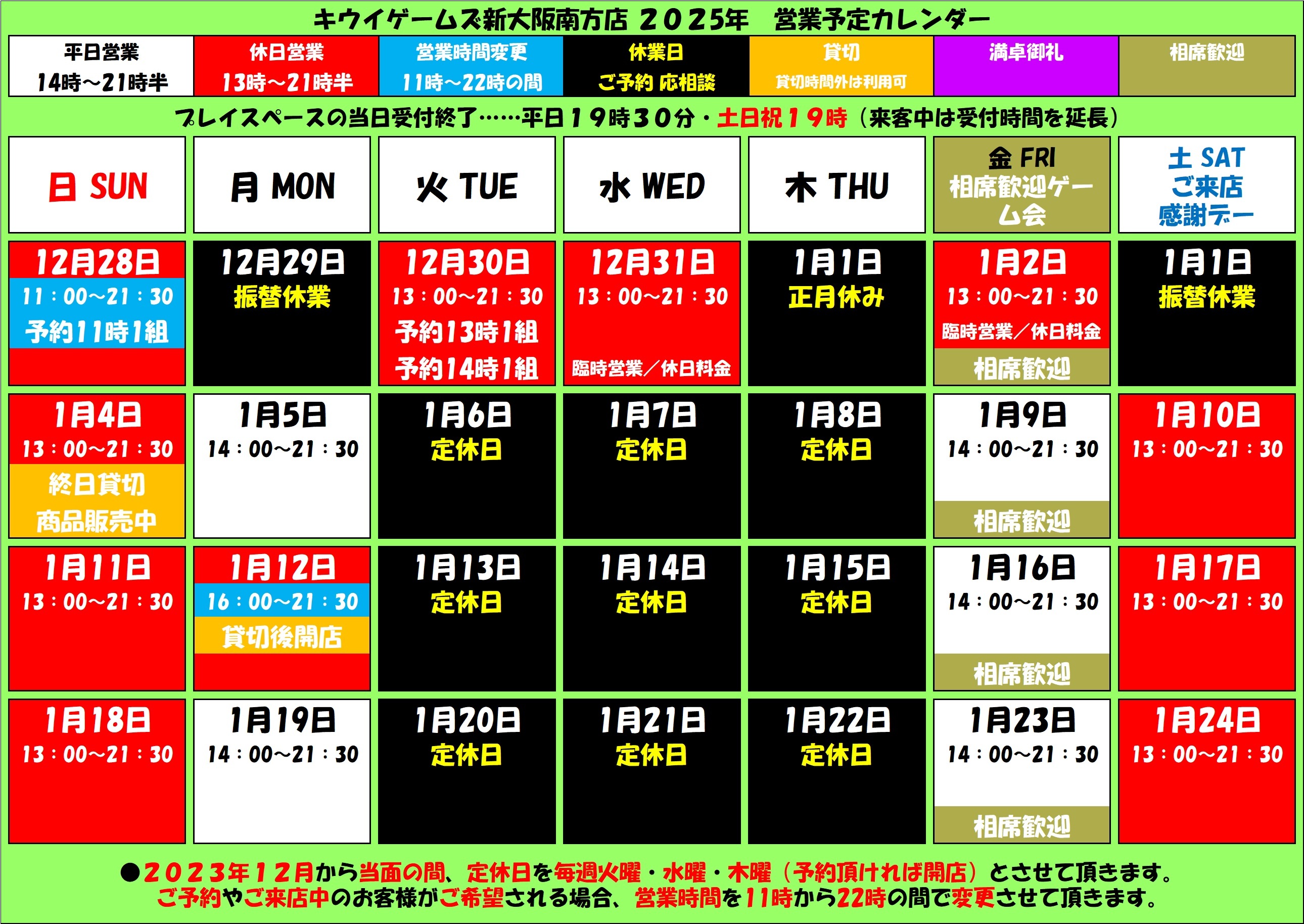 - 6ヶ月前2025年06月30日 10時58分頃【2025年12月22日(月)開店準備中】本日は14時から21時30分(受付終了19時)まで平日営業で開店させて頂きます。お席に余裕がございます。お気軽にご予約ご来店下さいませ。なお再度の緊急事態宣言や自粛要請、ご予約やご来店中のお客様のご希望により、営業時間の変更や臨時休業させて頂く場合がございます。営業時間の変更にご注意下さい。JR新大阪駅から徒歩3分。学生半額割引、TRPGでのご利用も気軽に! #西中島南方 #新大阪 #ボードゲーム #TRPG・本日は14時から21時30分(受付終了19時)まで、平日営業で開店させて頂きます。お席に余裕がございます。お気軽にご予約ご来店下さいませ。なおご予約やご来店中のお客様のご希望により、営業時間を11時から22時の間で拡大させて頂く場合がございます。お気軽にお問い合わせ下さい。また再度の緊急事態...53ページビュー