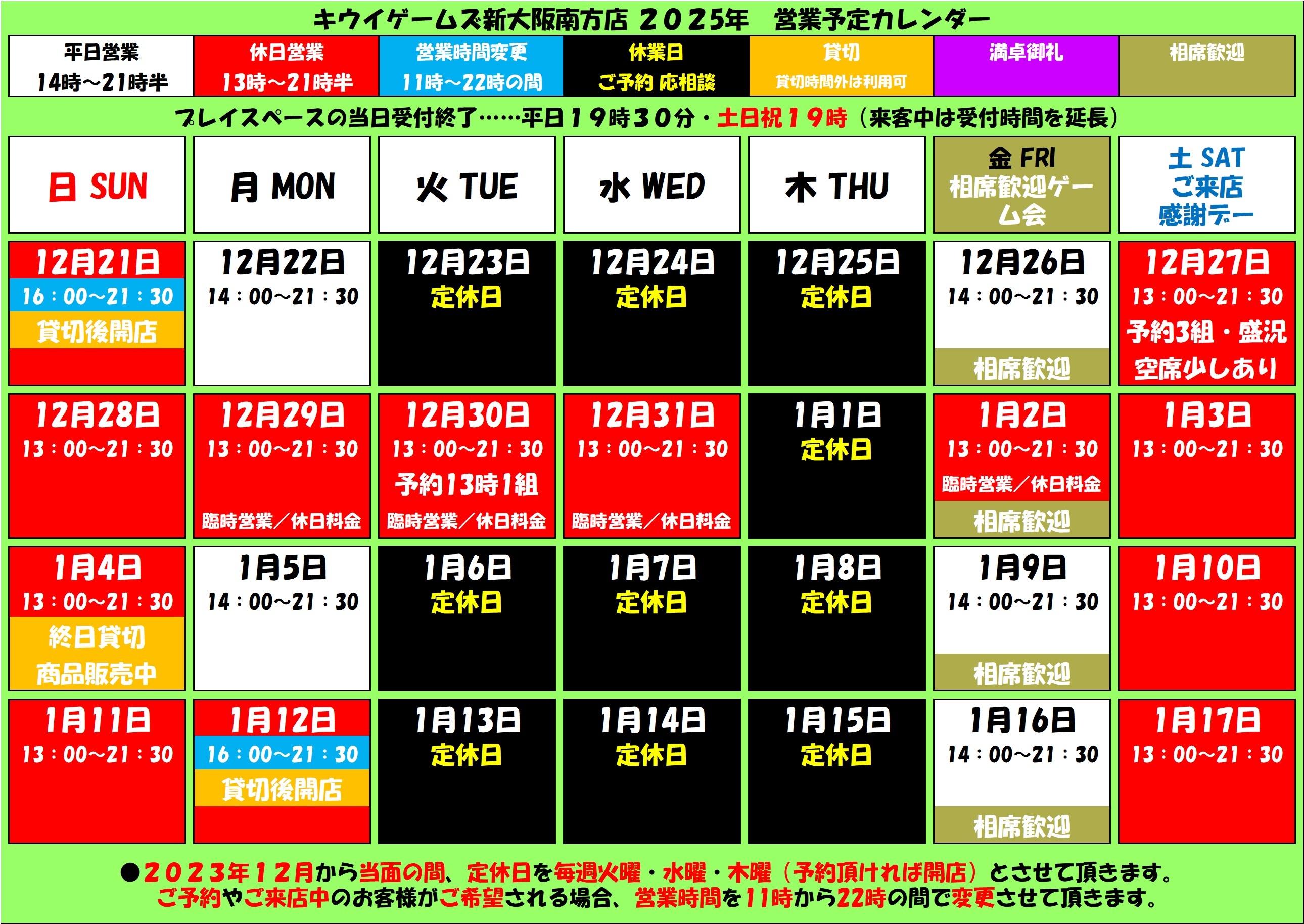 【2025年12月27日(土)13時00分・盛況中!】21時30分(受付終了19時)まで休日営業で開店させて頂きます。予約13時1組、15時1組。少しお席に余裕がございます。お気軽にご予約ご来店下さいませ。JR新大阪駅・徒歩5分。お得な学割半額、TRPGでのご利用も。再度の緊急事態宣言や自粛要請、ご予約やご来店中のお客様のご希望により、営業時間の変更や臨時休業の可能性がございます。今後の営業情報にご注意ください。