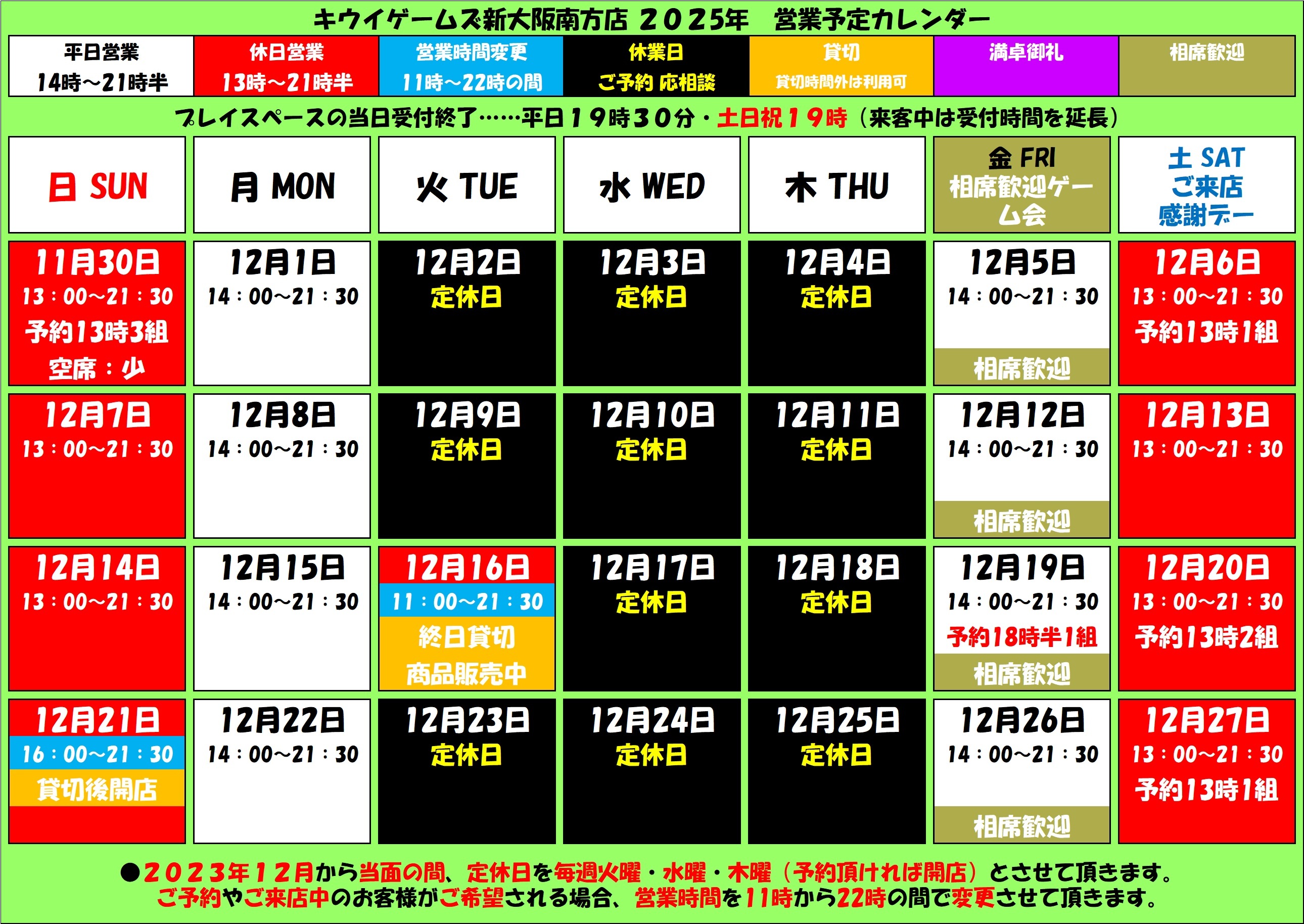 【2025年12月6日(土)13時00分】21時30分(受付終了19時)まで休日営業で開店させて頂きます。ご予約13時1組。お席に余裕がございます。お気軽にご予約ご来店下さいませ。JR新大阪駅・徒歩5分。お得な学割半額、TRPGでのご利用も。再度の緊急事態宣言や自粛要請、ご予約やご来店中のお客様のご希望により、営業時間の変更や臨時休業の可能性がございます。今後の営業情報にご注意ください。