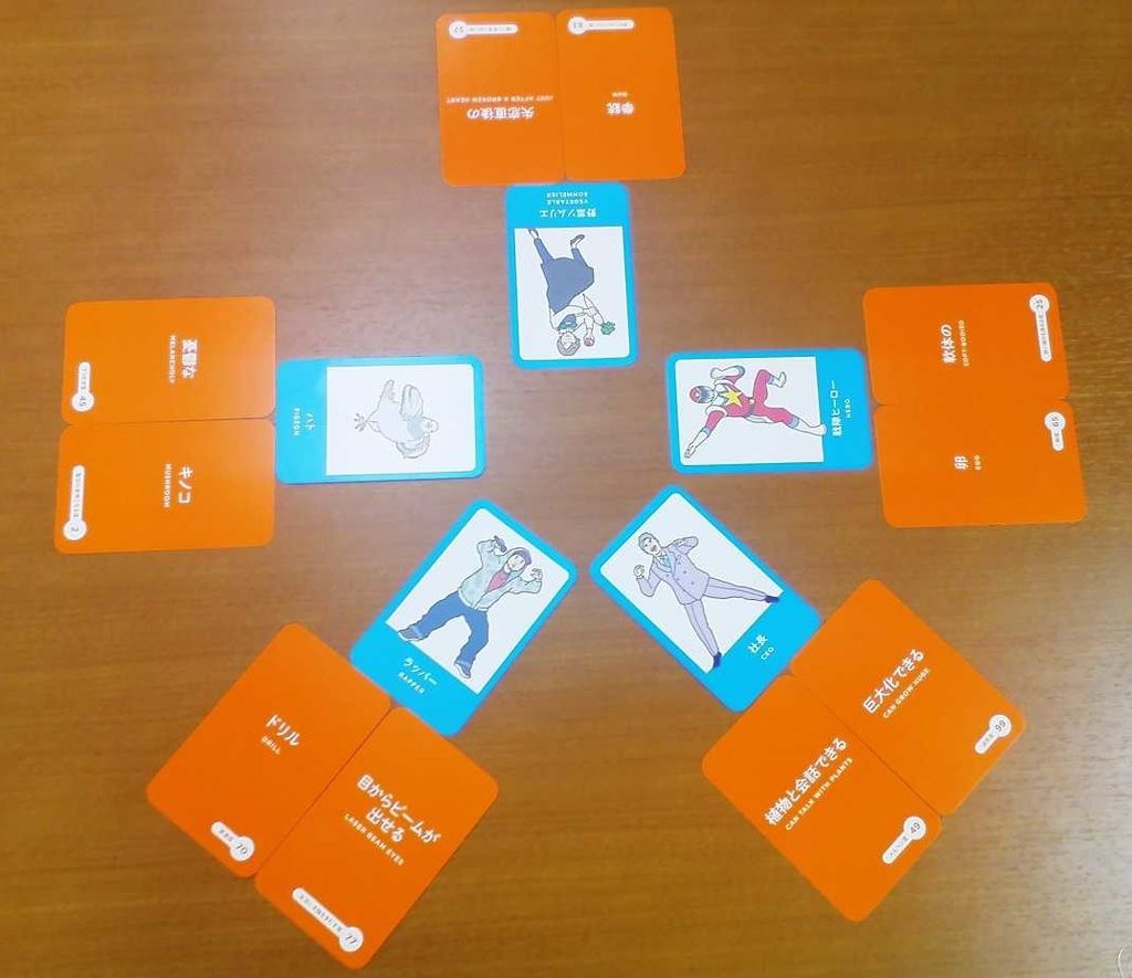 キャラクターカード1枚とアイテム/特徴カード2枚で強さをアピール!