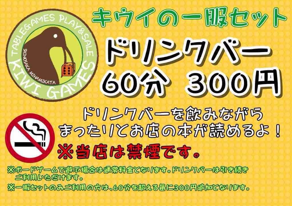 60分300円でドリンバー飲み放題の「キウイの一服セット」で、ご休憩も大歓迎です。